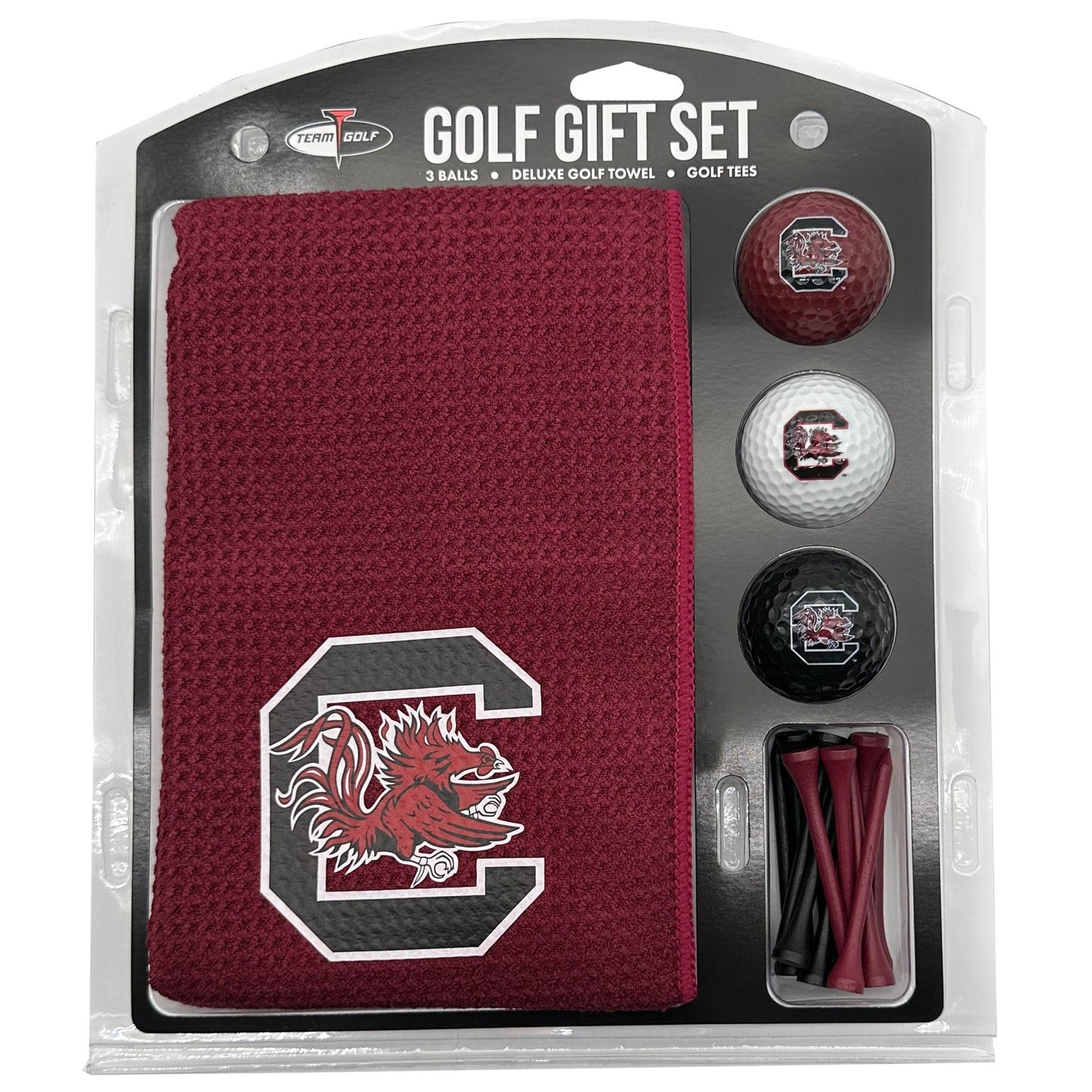 • Microfiber Towel Gift Set includes 16x40 microfiber towel (team color or white) with printed logo, 3 golf balls (colors may vary), and set of 10 tees