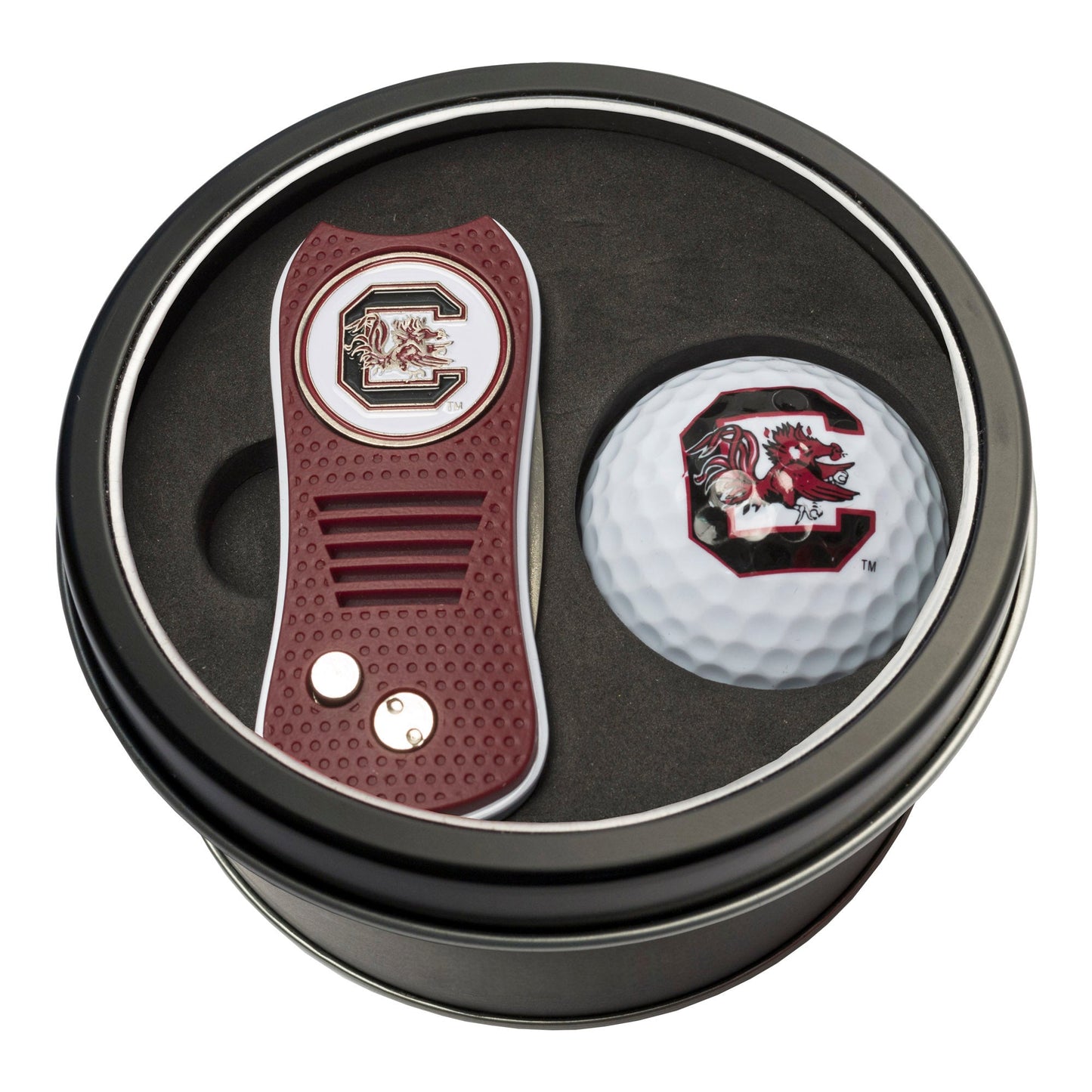 • Golf Ball Tin includes switchblade style retractable divot tool with double-sided magnetic ball marker, 1 logo golf ball