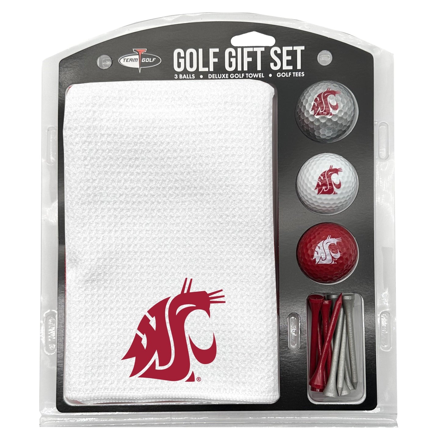- Microfiber Towel Gift Set includes 16x40 microfiber towel (team color or white) with printed logo, 3 golf balls (colors may vary), and set of 10 tees