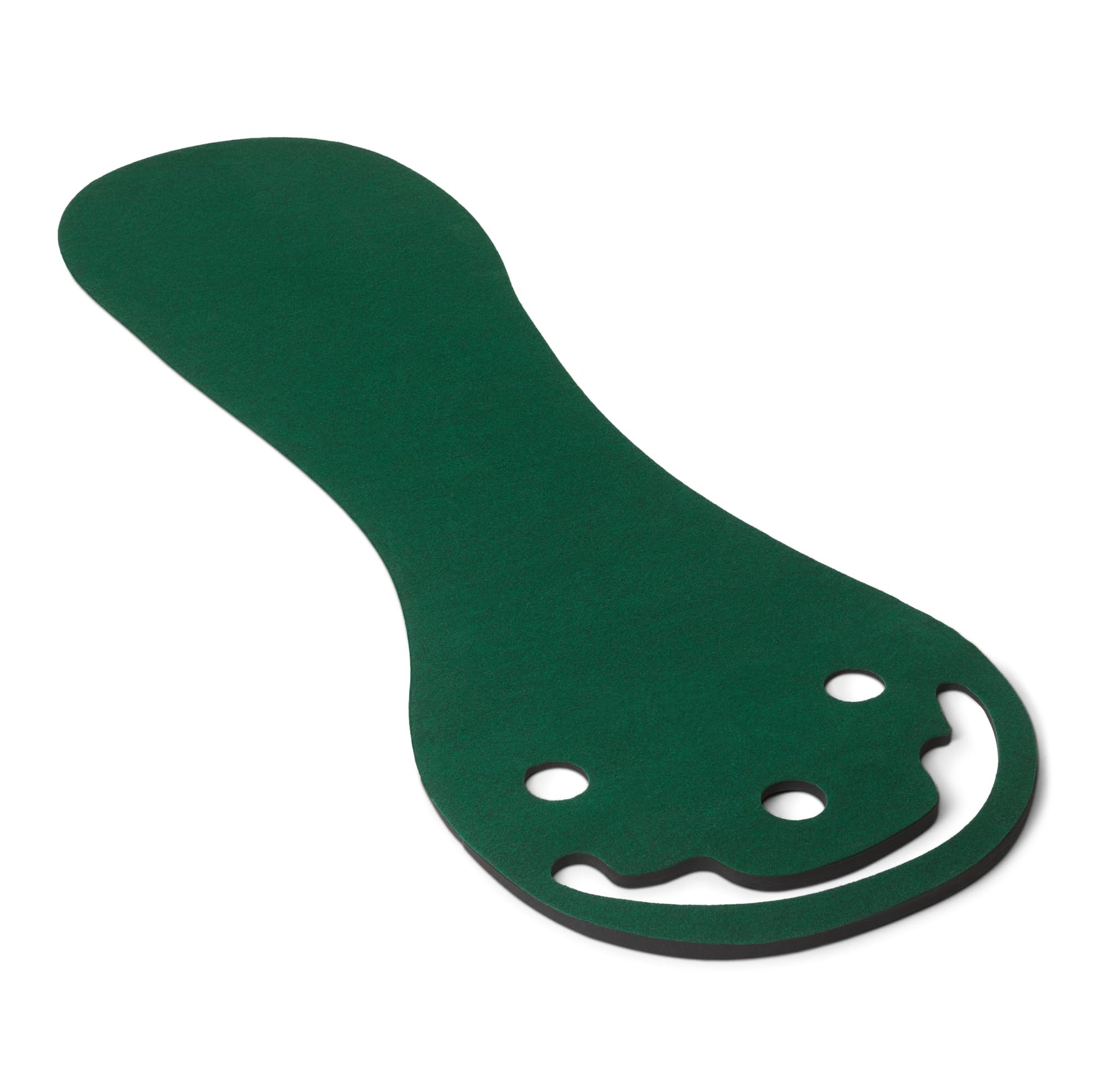 - 106" x 34" kidney-shaped putting mat for indoor/outdoor golf practice; perfect for home, office, or backyard use