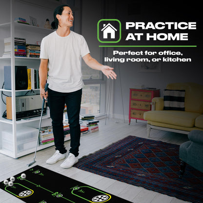 - Advanced Alignment Markings: Equipped with clear alignment guides and distance markers, the green putting mat helps players improve their aim and distance control. Perfect for golfers who want to fine-tune their putting mechanics,,