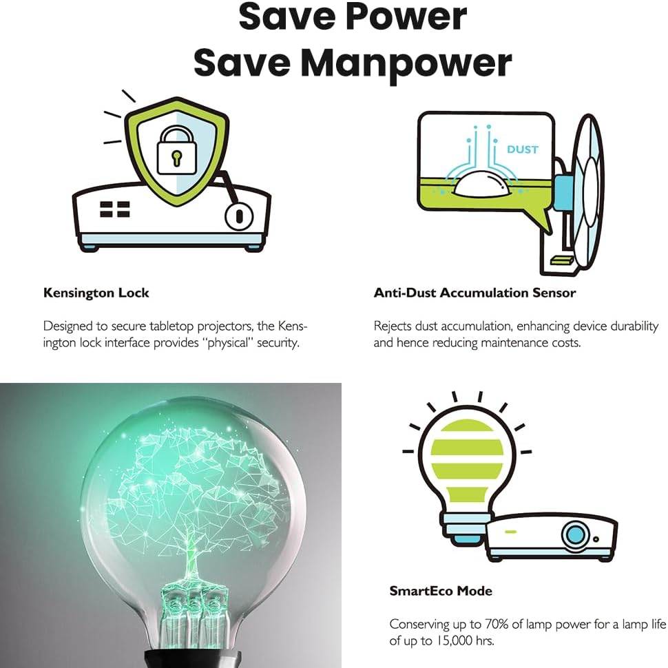 - EXTENDED LAMP LIFE – Up to an impressive 10, 000 hour lamp life, your projector should last over 10 years, even if you give a 2 hour presentation every day.