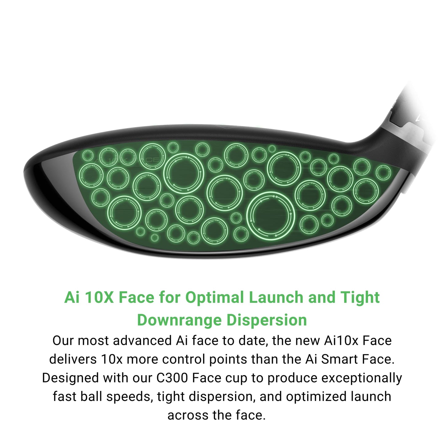 • Ai 10X Face for Optimal Launch and Tight Downrange Dispersion. Our most advanced Ai face to date, the new Ai10x Face delivers 10x more control points than the Ai Smart Face. Designed with a titanium face insert to produce exceptionally fast ball speeds, tight dispersion, and optimized launch across the face.