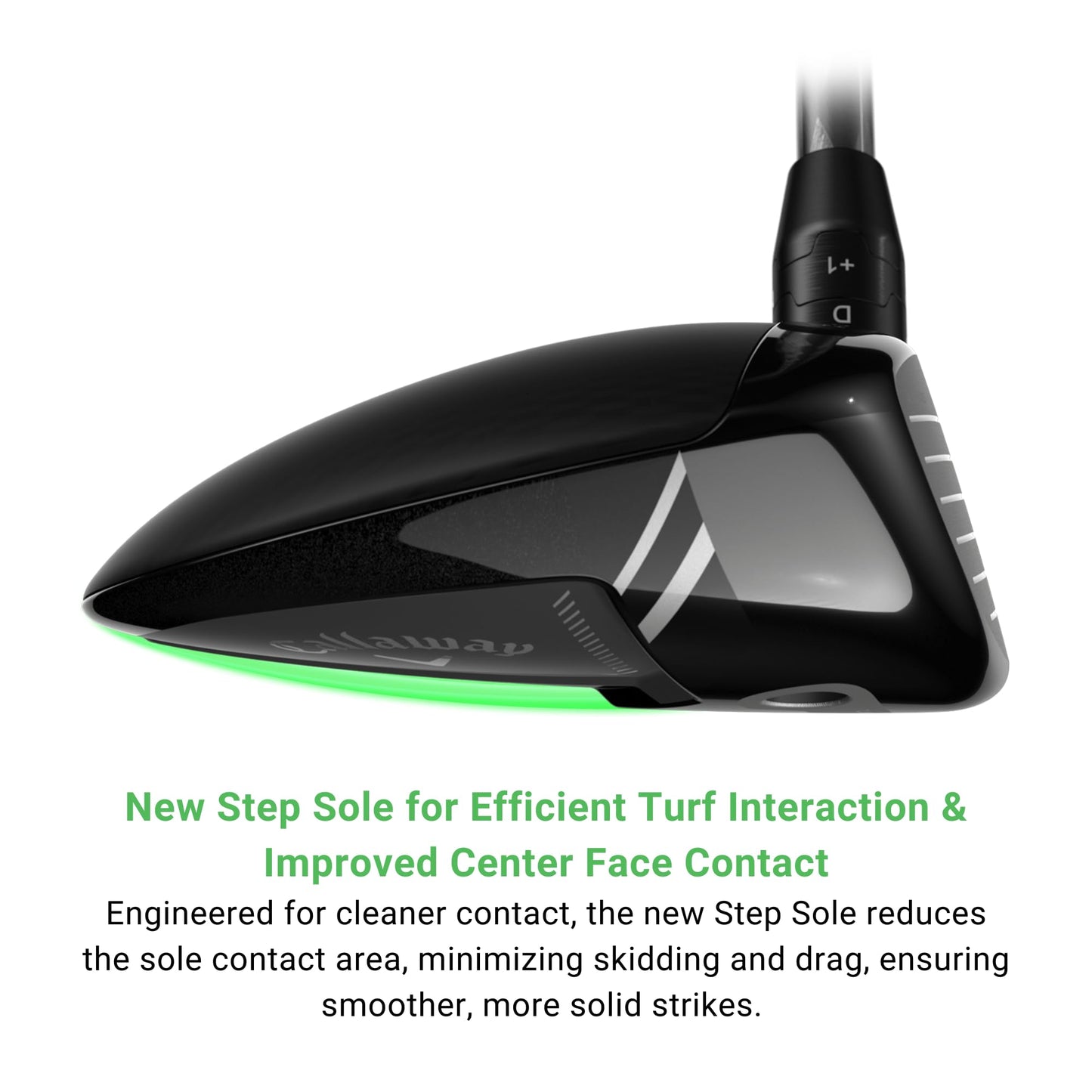• New Step Sole for Efficient Turf Interaction & Improved Center Face Contact. Engineered for cleaner contact, the new Step Sole reduces the sole contact area, minimizing skidding and drag, ensuring smoother, more solid strikes. Developed through extensive studies with tour players, this sole shape delivers enhanced turf interaction for consistent results.