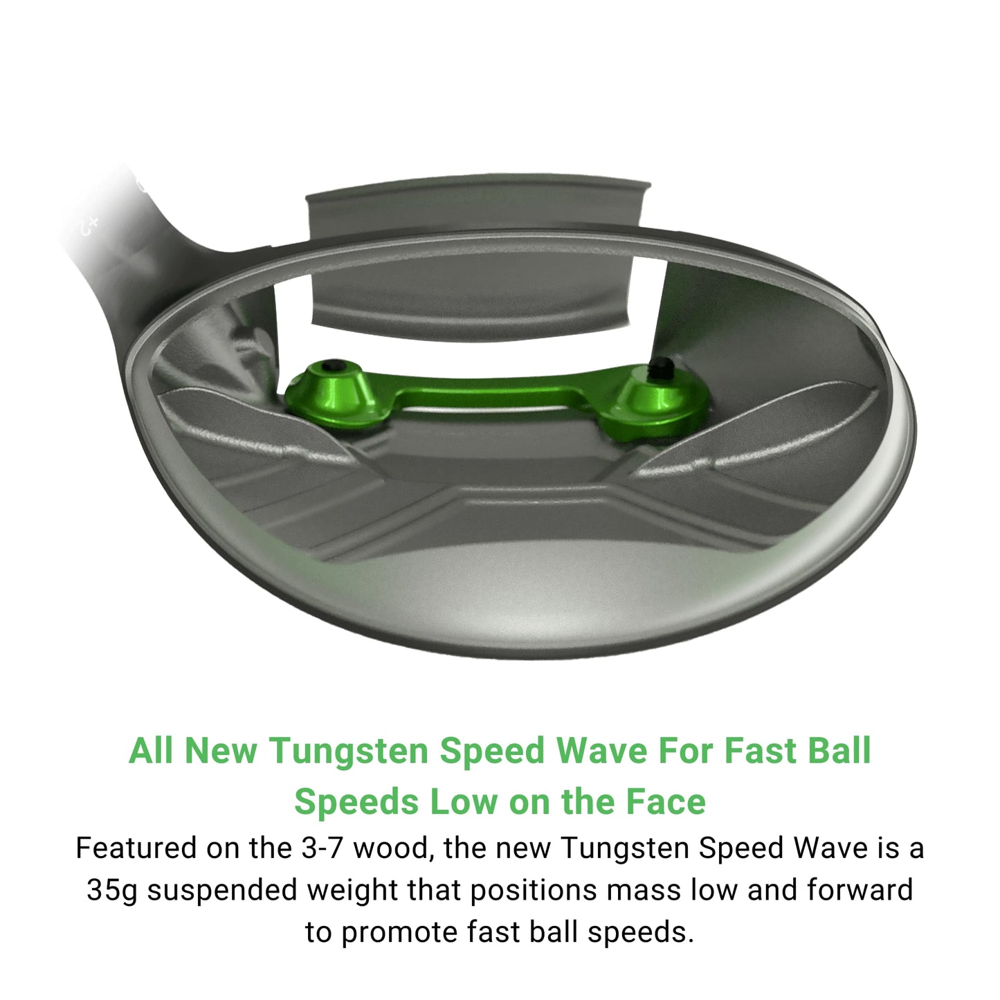 • All New Tungsten Speed Wave For Consistently Fast Ball Speeds. Featured on the 3-5 wood, the new Tungsten Speed Wave is a 70g suspended weight that positions mass low and forward to promote fast ball speeds. This new, innovative design is engineered specifically to enhance misses low on the face – a typical miss for most players.