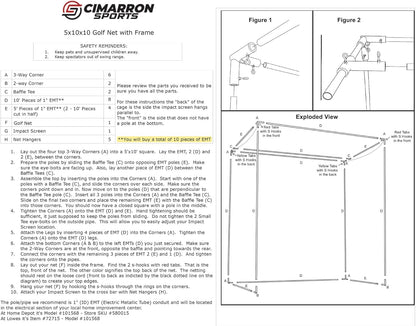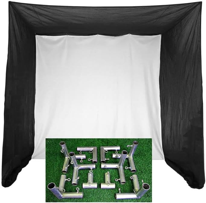Cimarron Sports Tour Simulator Golf Practice Hitting Net Enclosure with 10' x 10' White Simulator Ready Projection Impact Screen and 5' x 10' x 10' DIY Golf Frame Corner Kit