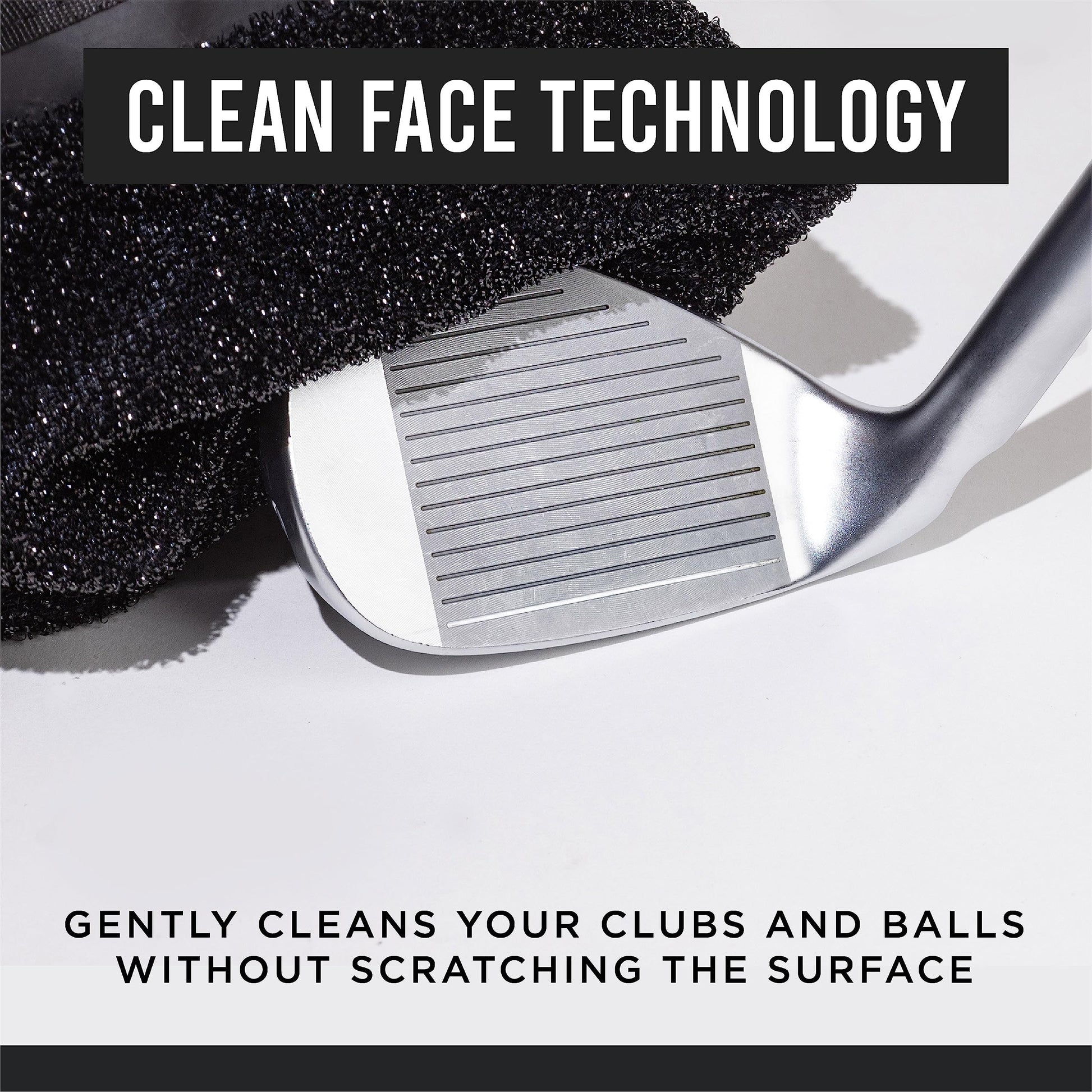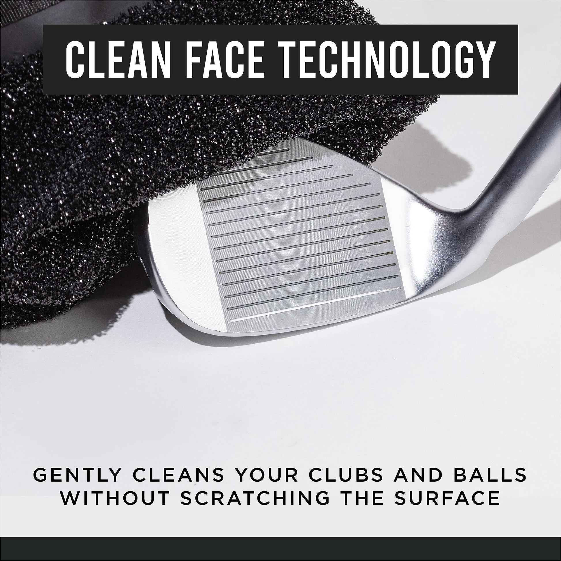 - CLEAN FACE TECHNOLOGY The Club Scrub utilizes Clean Face Technology that gently cleans your clubs and balls without scratching the surface to ensure proper contact, spin, flight, and roll with every stroke.