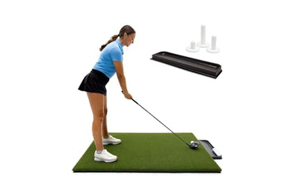 Premium Turf Indoor/Outdoor Golf Mat. Bonus Tray + 3 Tees