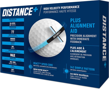 Distance from TaylorMade offers high-velocity performance for distance on all shots. Combining a REACT Speed Core and high-speed, low-drag aerodynamics, golfers will experience a golf ball designed for speed.