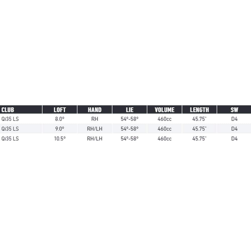 - QUEST FOR LAUNCH Qi35 LS has our lowest CG projection with incredible MOI creating efficient launch and spin over a larger area of the face.