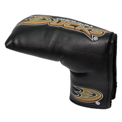 The Ducks Blade Putter Cover fits virtually all blade putters and includes 2 location embroidery and fleece lining for extra club protection. Made of buffalo vinyl and synthetic suede like material.