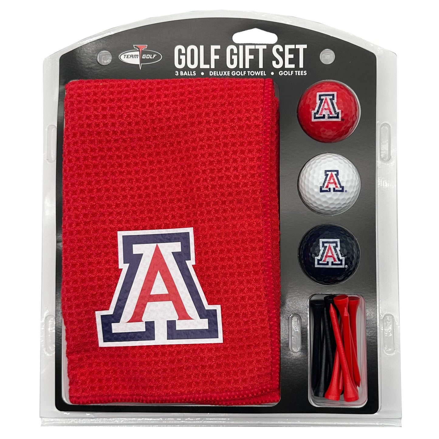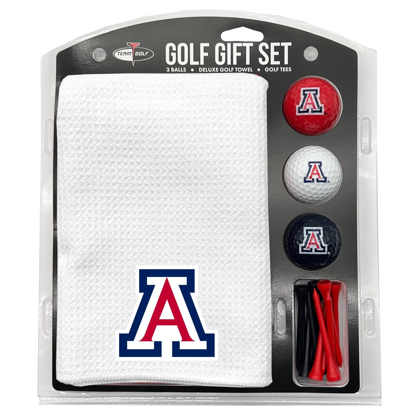 - Microfiber Towel Gift Set includes 16x40 microfiber towel (team color or white) with printed logo, 3 golf balls (colors may vary), and set of 10 tees