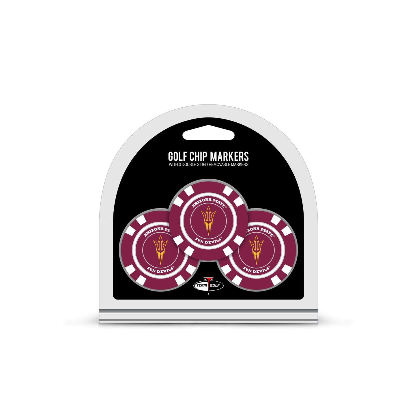3 pack includes 3 golf chip ball markers with a team logo on the back of the chip and a strong magnet to hold the removable double sided enamel fill ball markers.