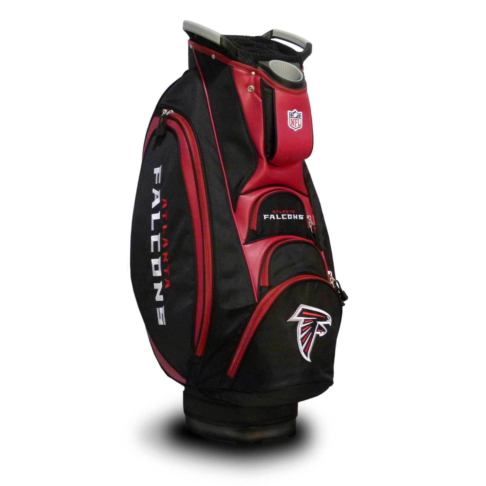 This cart bag features 10-way full length dividers, 3 bottom compartments, an oversized putter well, padded straps, removable rain hood, towel ring and umbrella holder; It comes with five zippered pockets; One to hold valuables and another cooler pocket to store drinks.