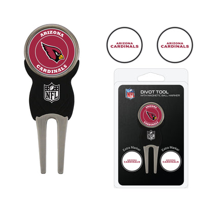 Signature divot tool includes 3 double-sided enamel fill ball markers, show off your team spirit while on the green!