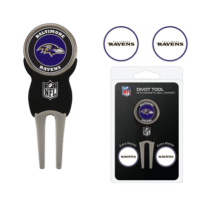 Signature divot tool includes 3 double-sided enamel fill ball markers, show off your team spirit while on the green!