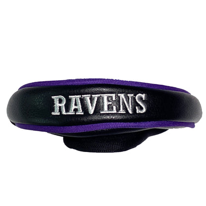 This Baltimore Ravens Blade Putter Cover fits virtually all blade putters and includes 2 location embroidery and fleece lining for extra club protection. Made of buffalo vinyl and synthetic suede like material.