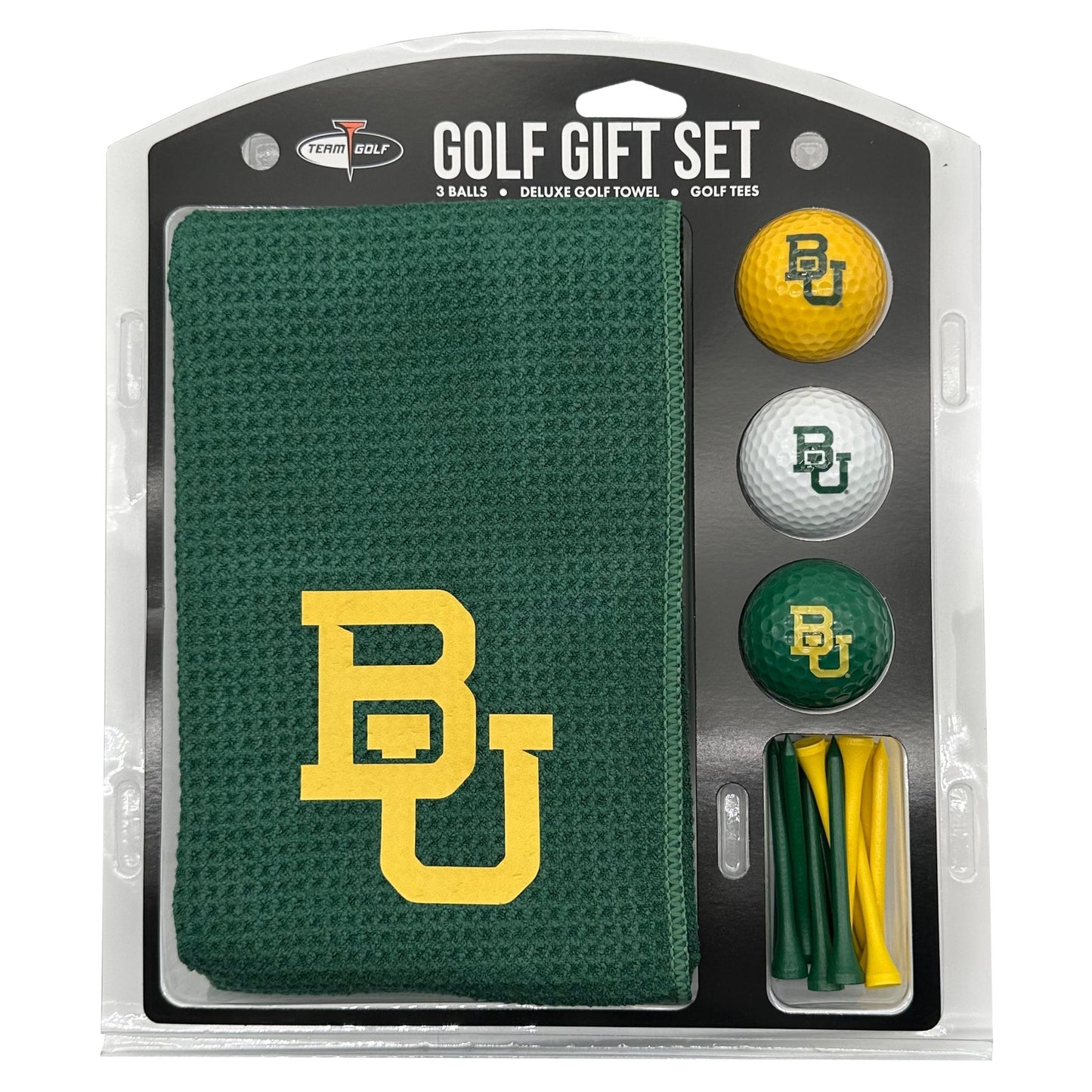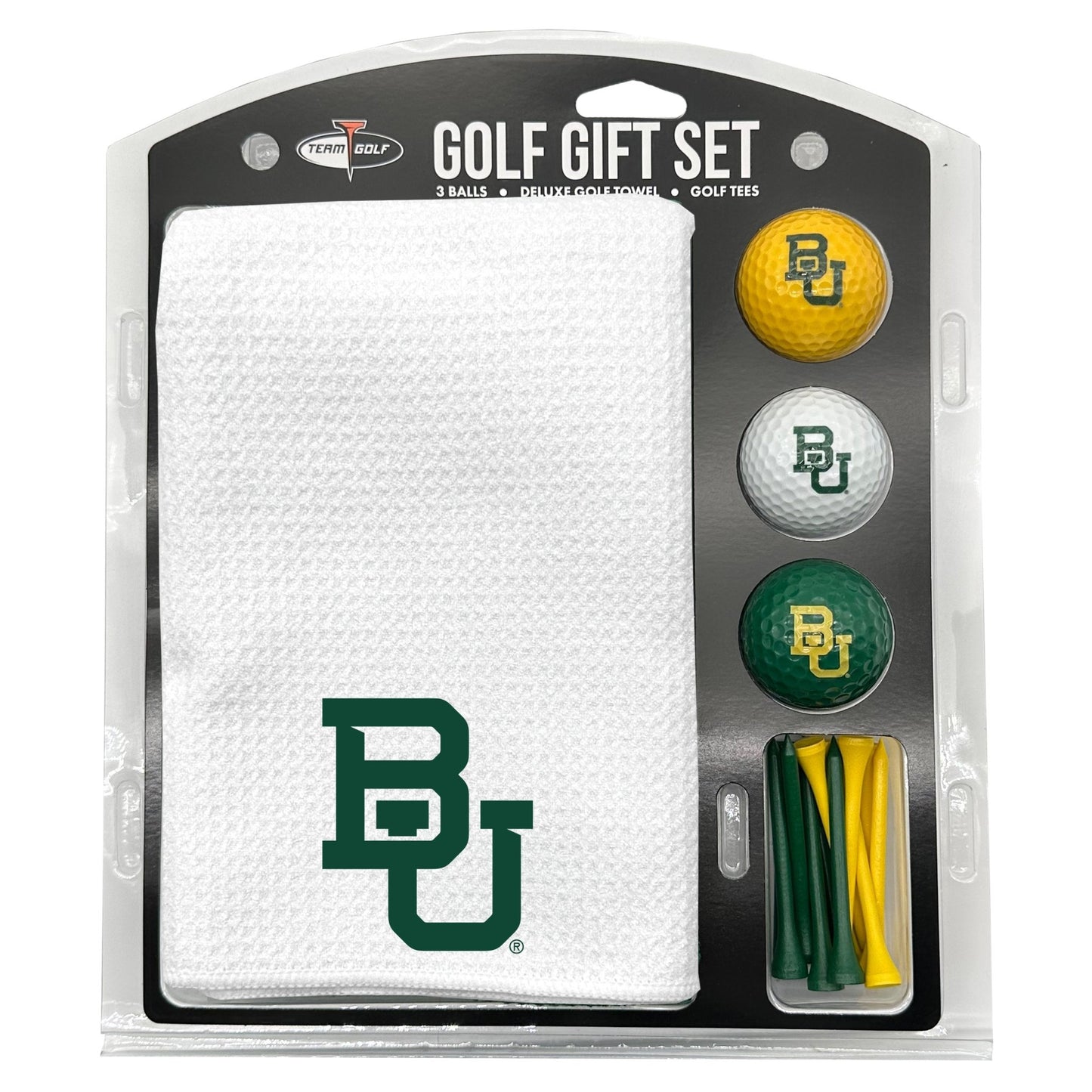 - Microfiber Towel Gift Set includes 16x40 microfiber towel (team color or white) with printed logo, 3 golf balls (colors may vary), and set of 10 tees