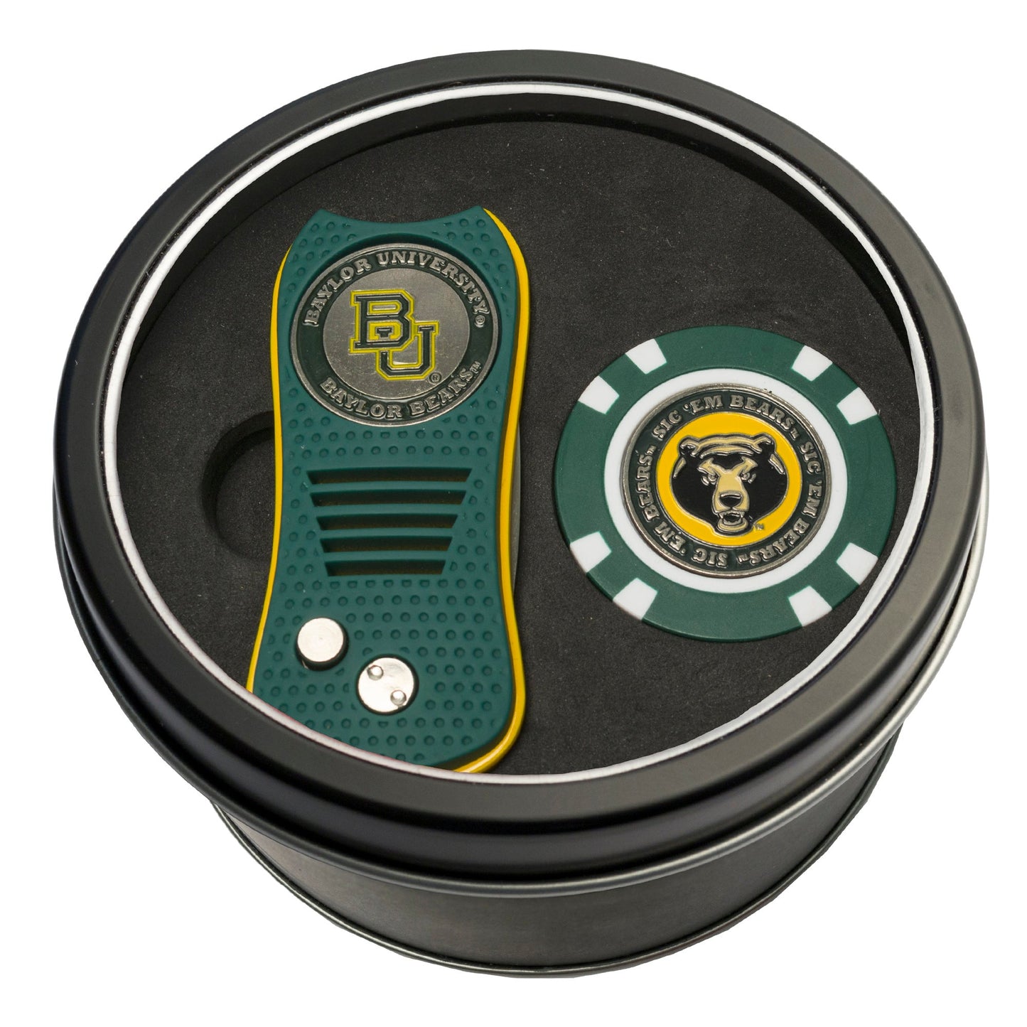 - Poker Chip Tin includes switchblade style retractable divot tool with double-sided magnetic ball marker, 1 double sided team poker chip