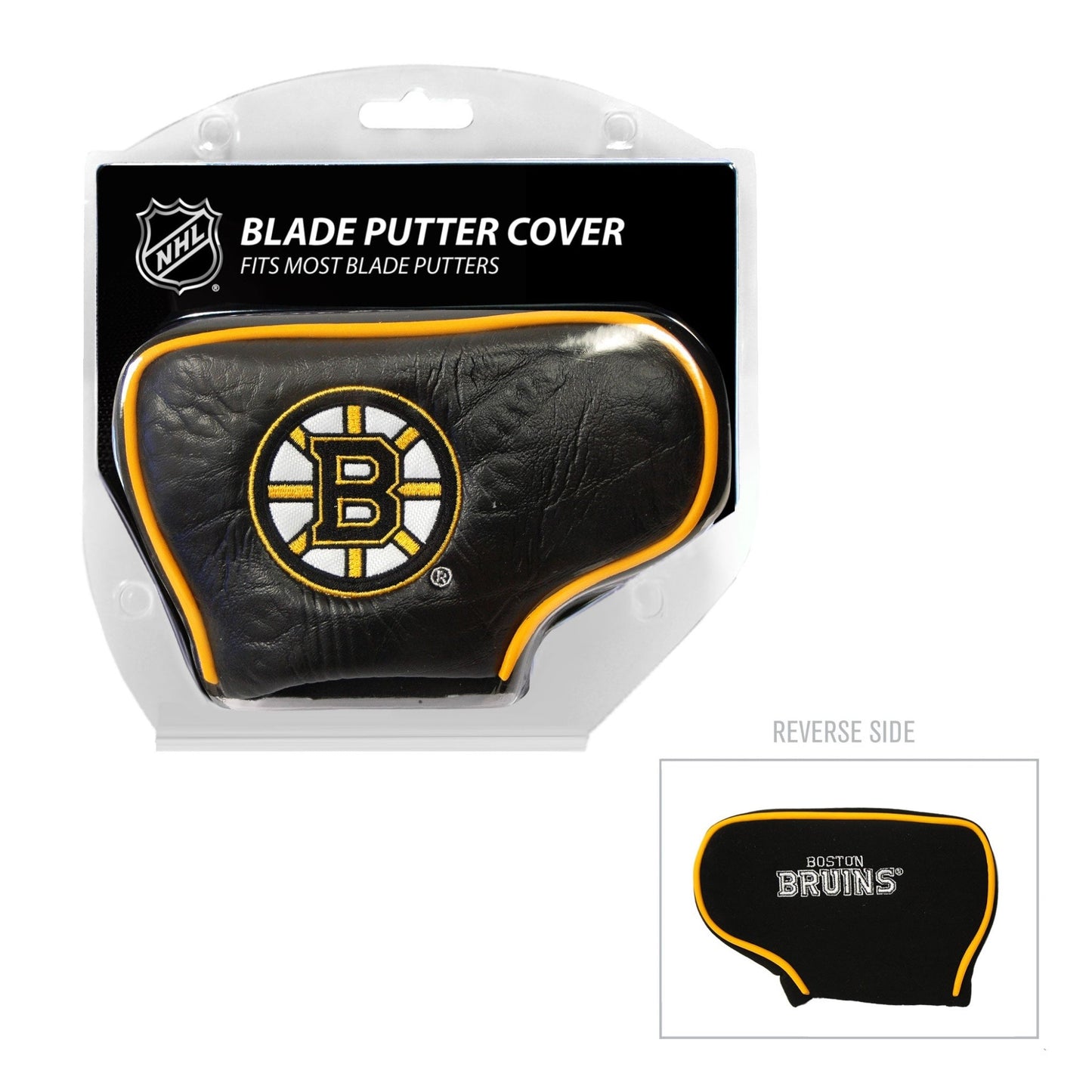 The Bruins Blade Putter Cover fits virtually all blade putters and includes 2 location embroidery and fleece lining for extra club protection. Made of buffalo vinyl and synthetic suede like material.