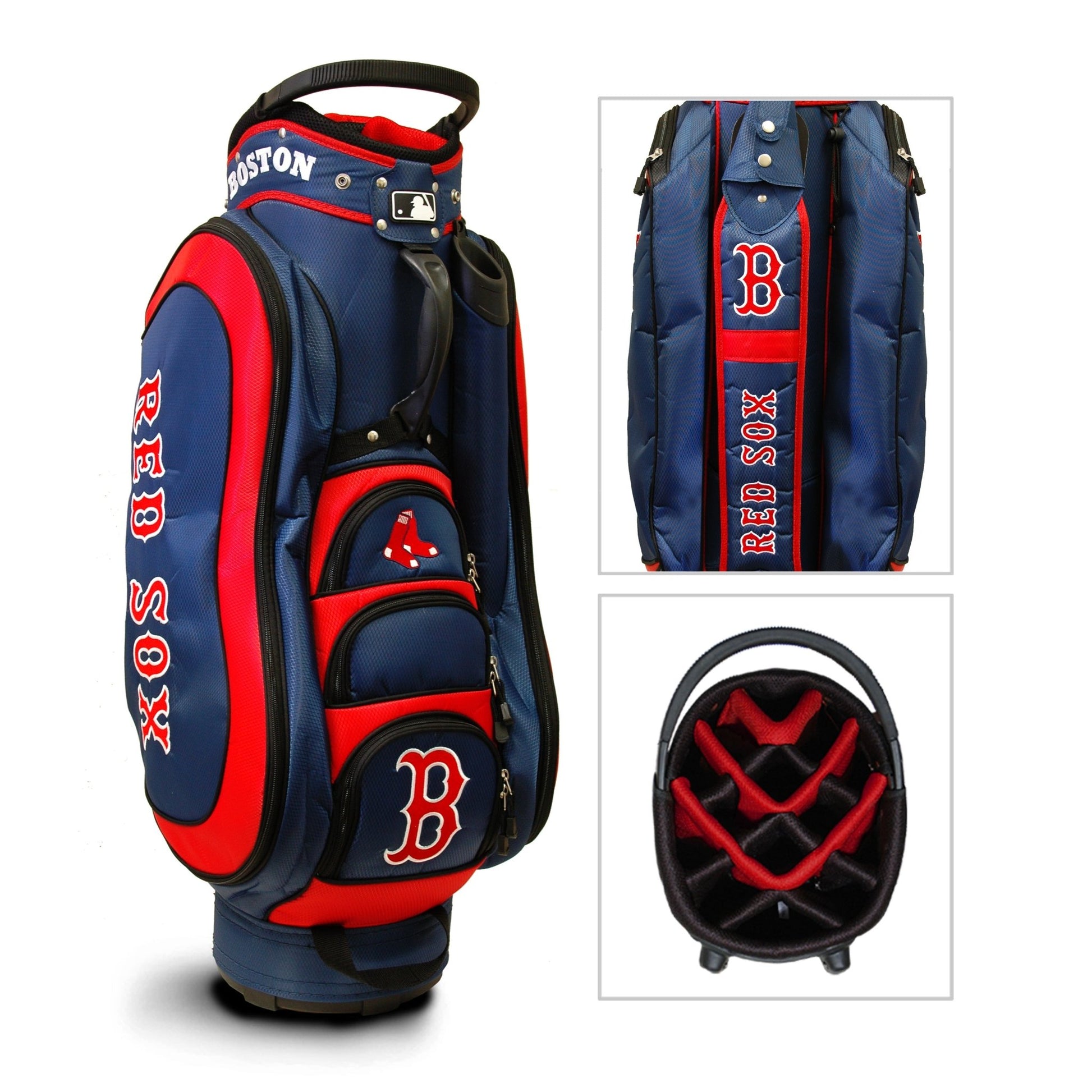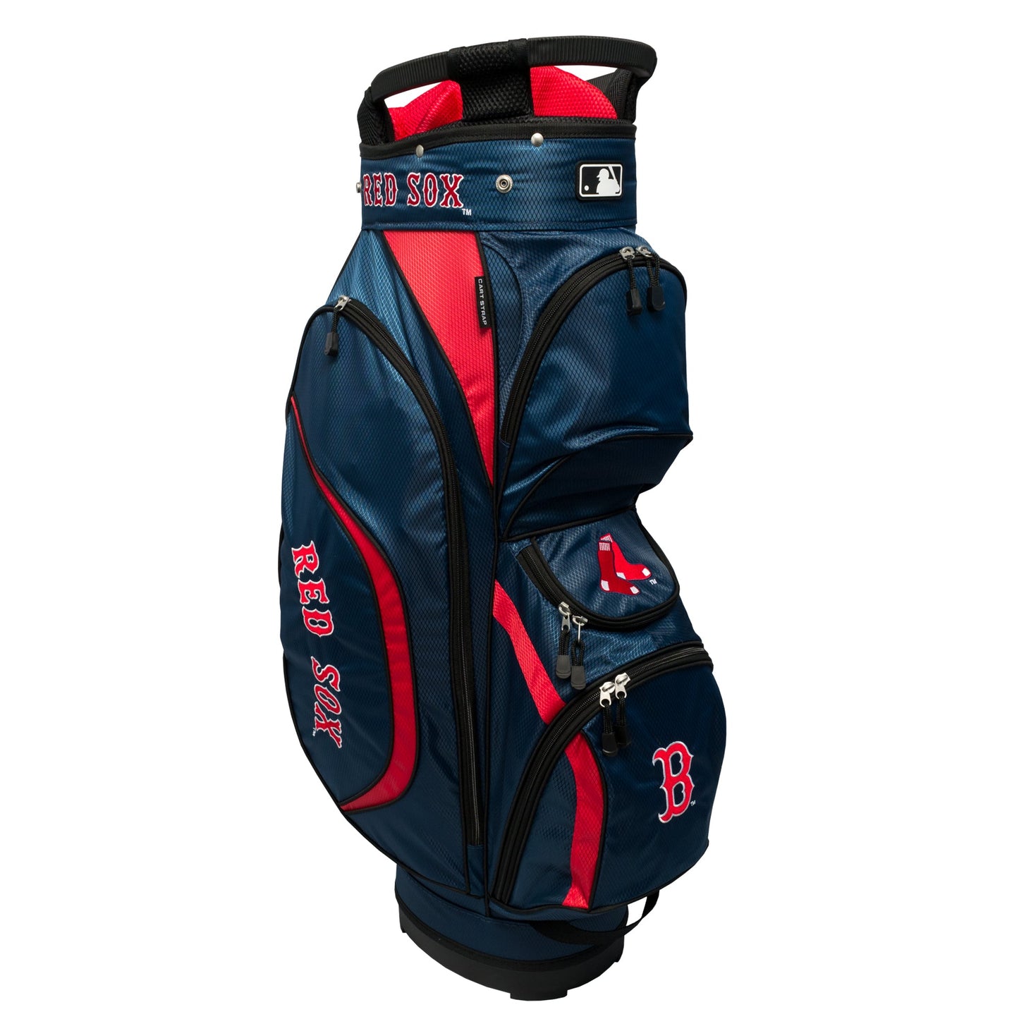 This cart bag features 10-way full length dividers, 3 bottom compartments, an oversized putter well, padded straps, removable rain hood, towel ring and umbrella holder; It comes with five zippered pockets; One to hold valuables and another cooler pocket to store drinks.