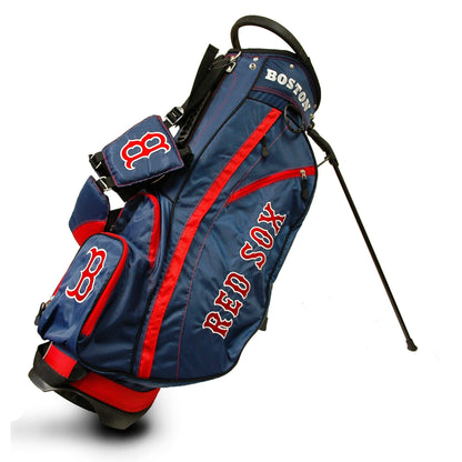 This stand bag features 14-way full length dividers, integrated top handle, & 2 lift assist handles, five zippered pockets, fleece lined valuable pouch, & cooler pocket, spring action stand, removable rain hood, umbrella holder, towel ring, & heavy duty nylon construction.