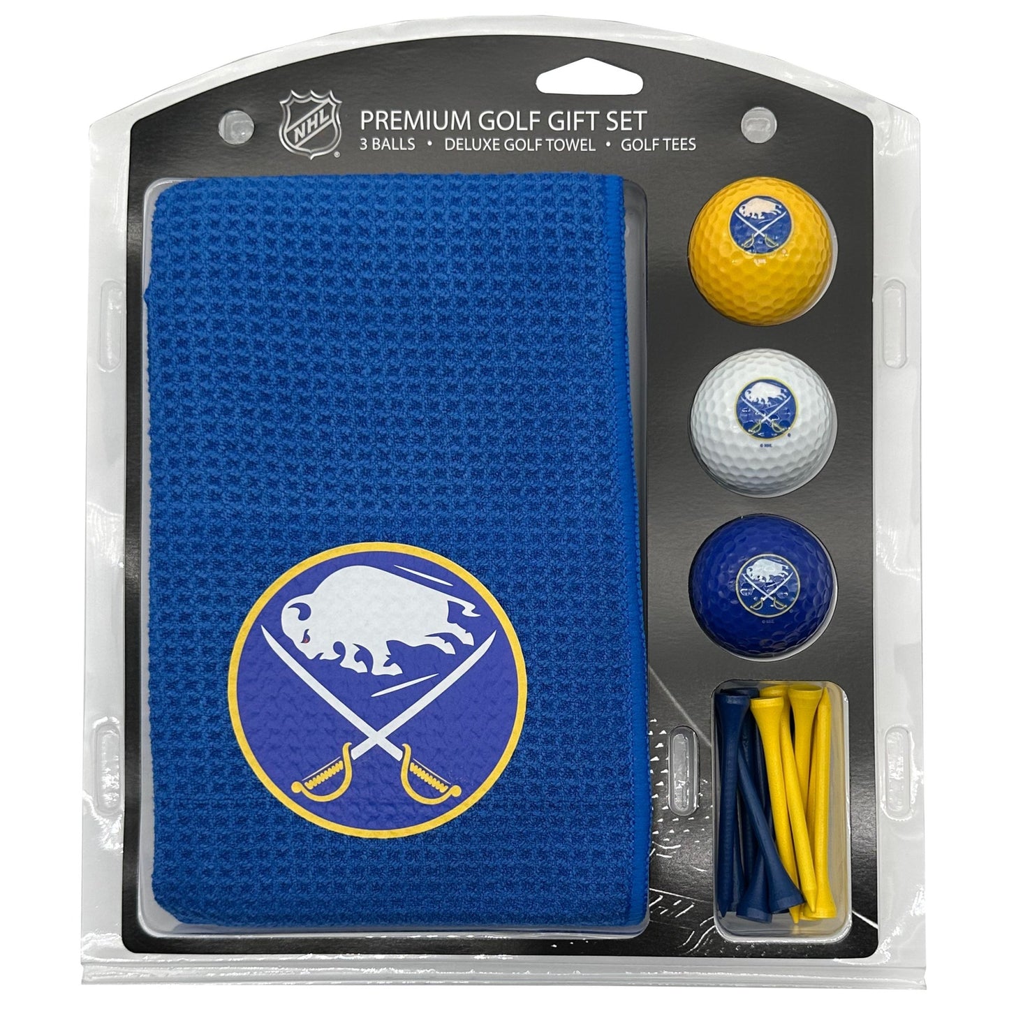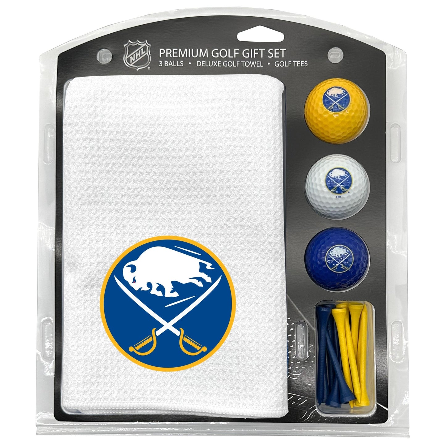 - Microfiber Towel Gift Set includes 16x40 microfiber towel (team color or white) with printed logo, 3 golf balls (colors may vary), and set of 10 tees
