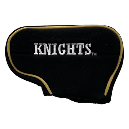 The Blade Putter Cover fits virtually all blade putters and includes 2 location embroidery and fleece lining for extra club protection. Made of buffalo vinyl and synthetic suede like material.