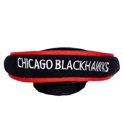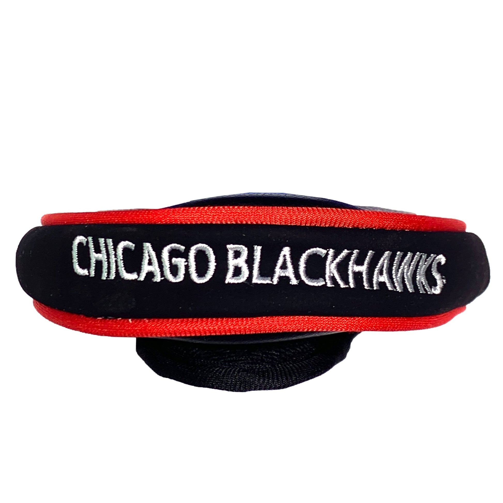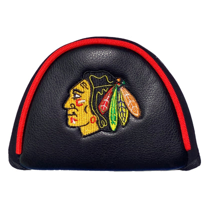 The Blackhawks Blade Putter Cover fits virtually all blade putters and includes 2 location embroidery and fleece lining for extra club protection. Made of buffalo vinyl and synthetic suede like material.