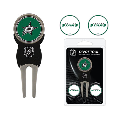 Signature divot tool includes 3 double-sided enamel fill ball markers, show off your team spirit while on the green!