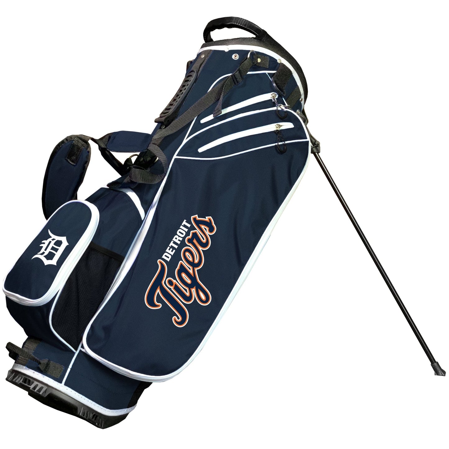 This stand bag features 14-way full length dividers, integrated top handle, & 2 lift assist handles, five zippered pockets, fleece lined valuable pouch, & cooler pocket, spring action stand, removable rain hood, umbrella holder, towel ring, & heavy duty nylon construction.