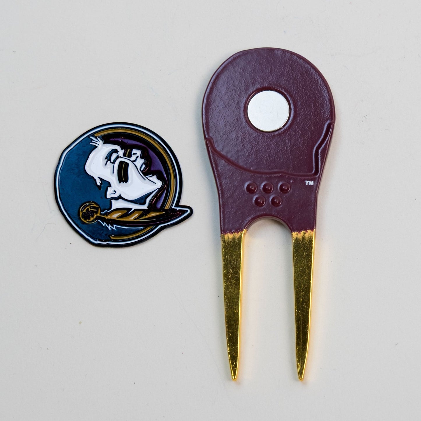 Signature divot tool includes 3 double-sided enamel fill ball markers, show off your team spirit while on the green!