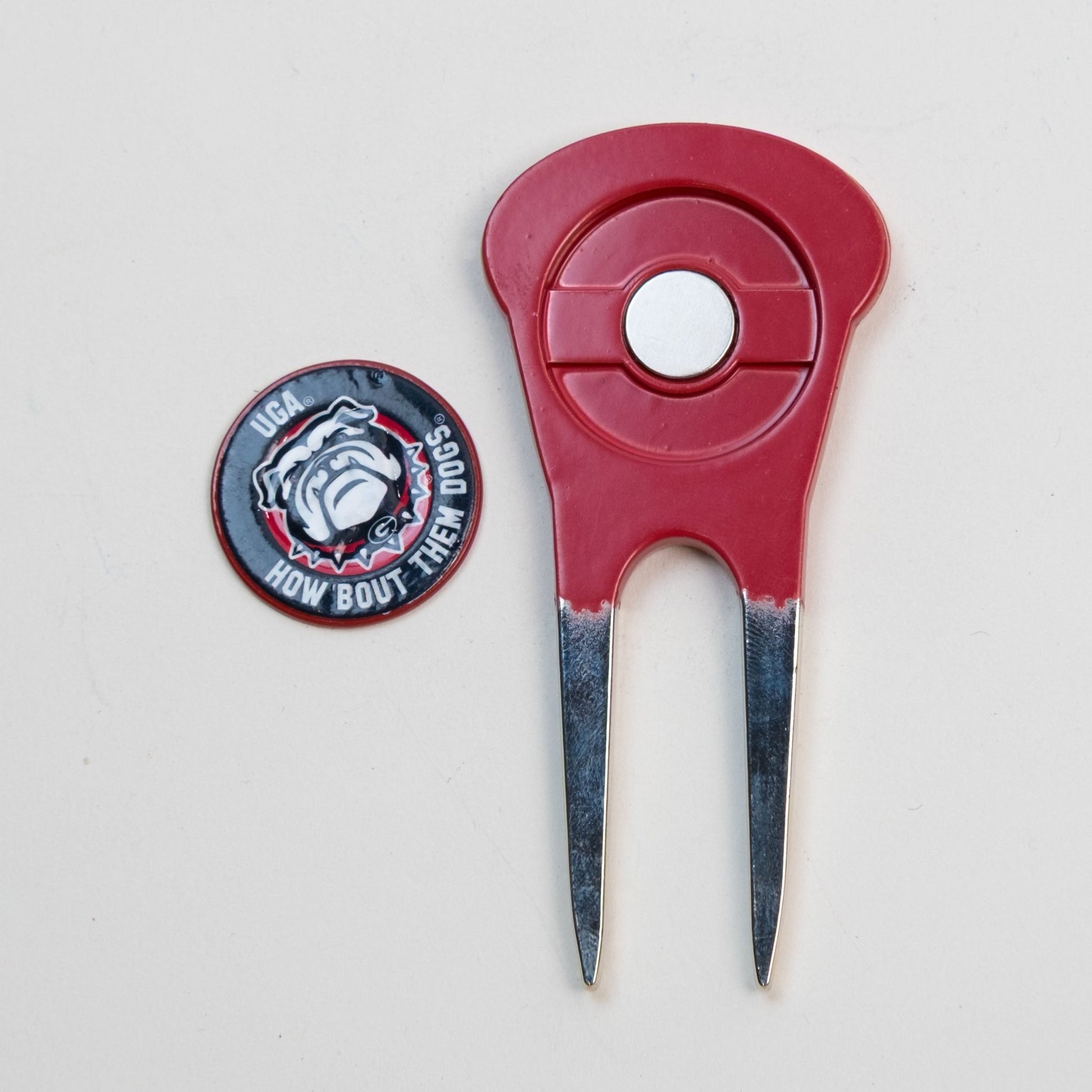 Signature divot tool includes 3 double-sided enamel fill ball markers, show off your team spirit while on the green!