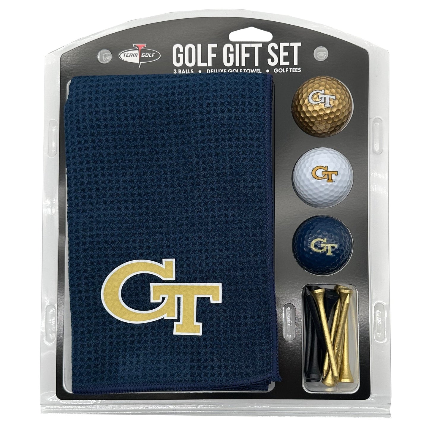 - Microfiber Towel Gift Set includes 16x40 microfiber towel (team color or white) with printed logo, 3 golf balls (colors may vary), and set of 10 tees