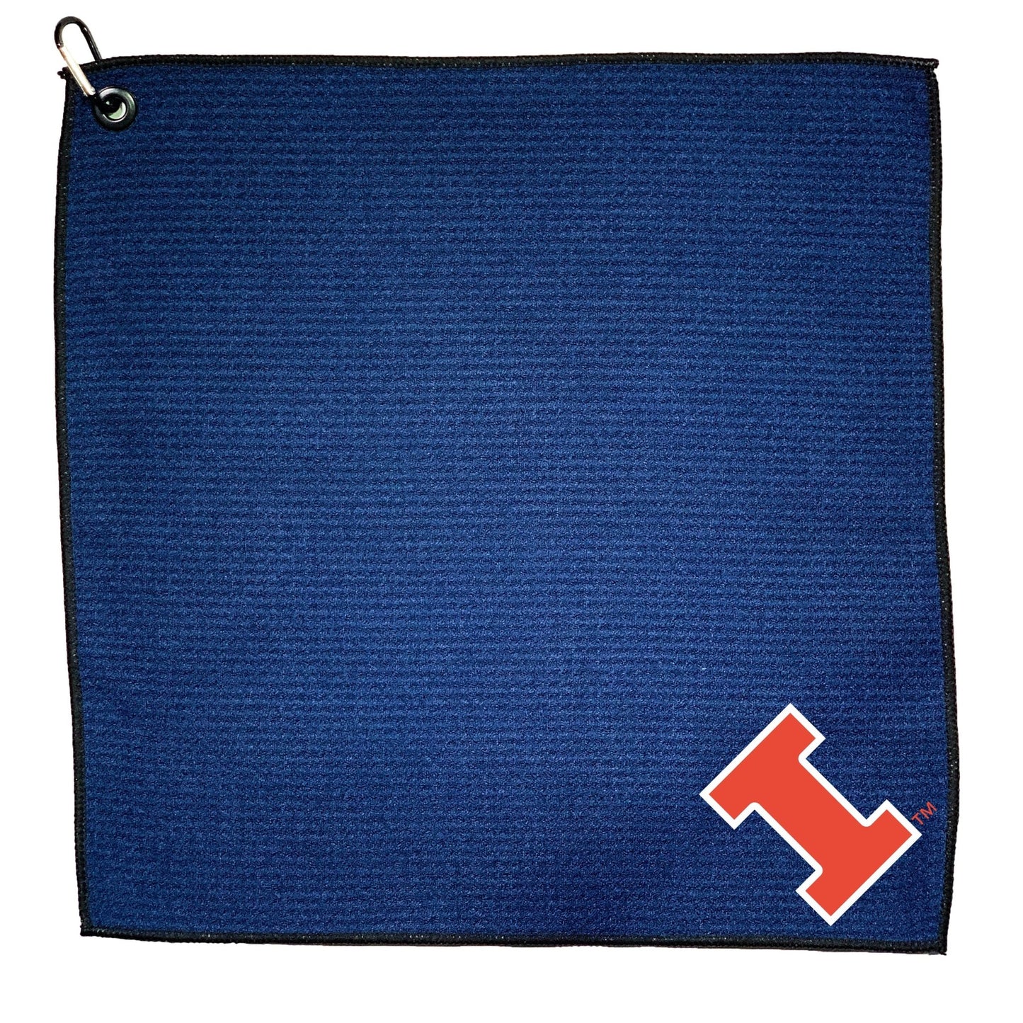 Microfiber 15X15" towel features handy carabiner for easy attachment and removal from golf bags and full color printed logo.