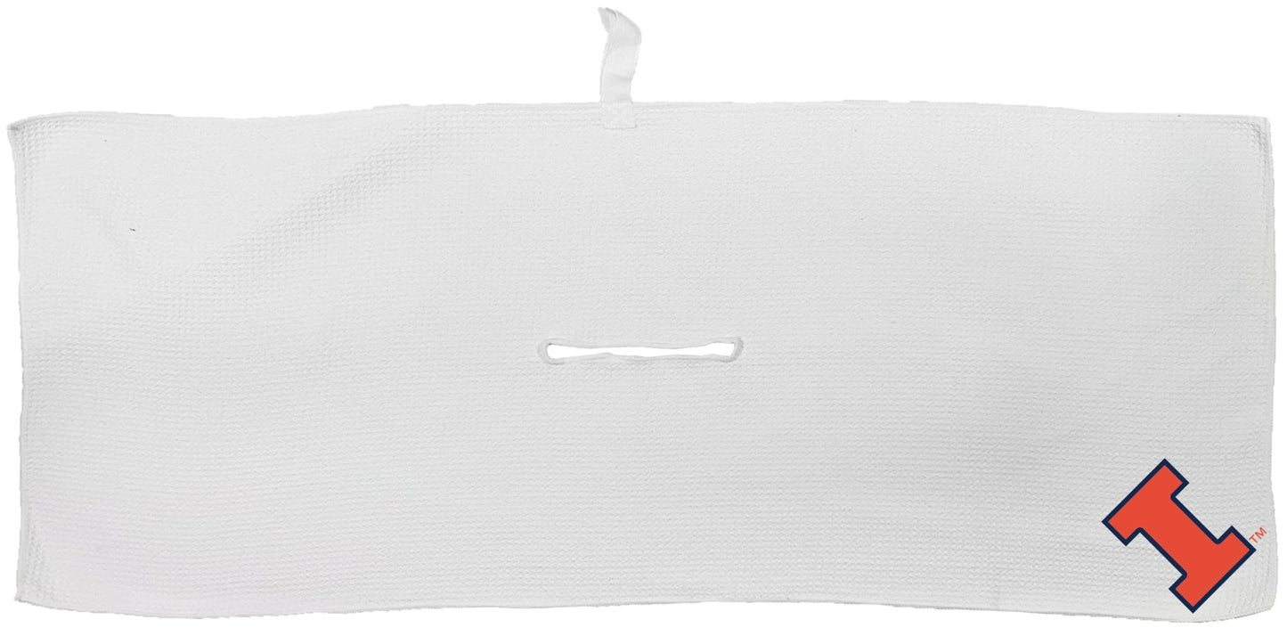Tri-Fold 16" x 22" towel features a checkered scrubber design for easier cleaning, swivel clip for easy attachment and removal from golf bags and a full color embroidered logo. 100% Cotton