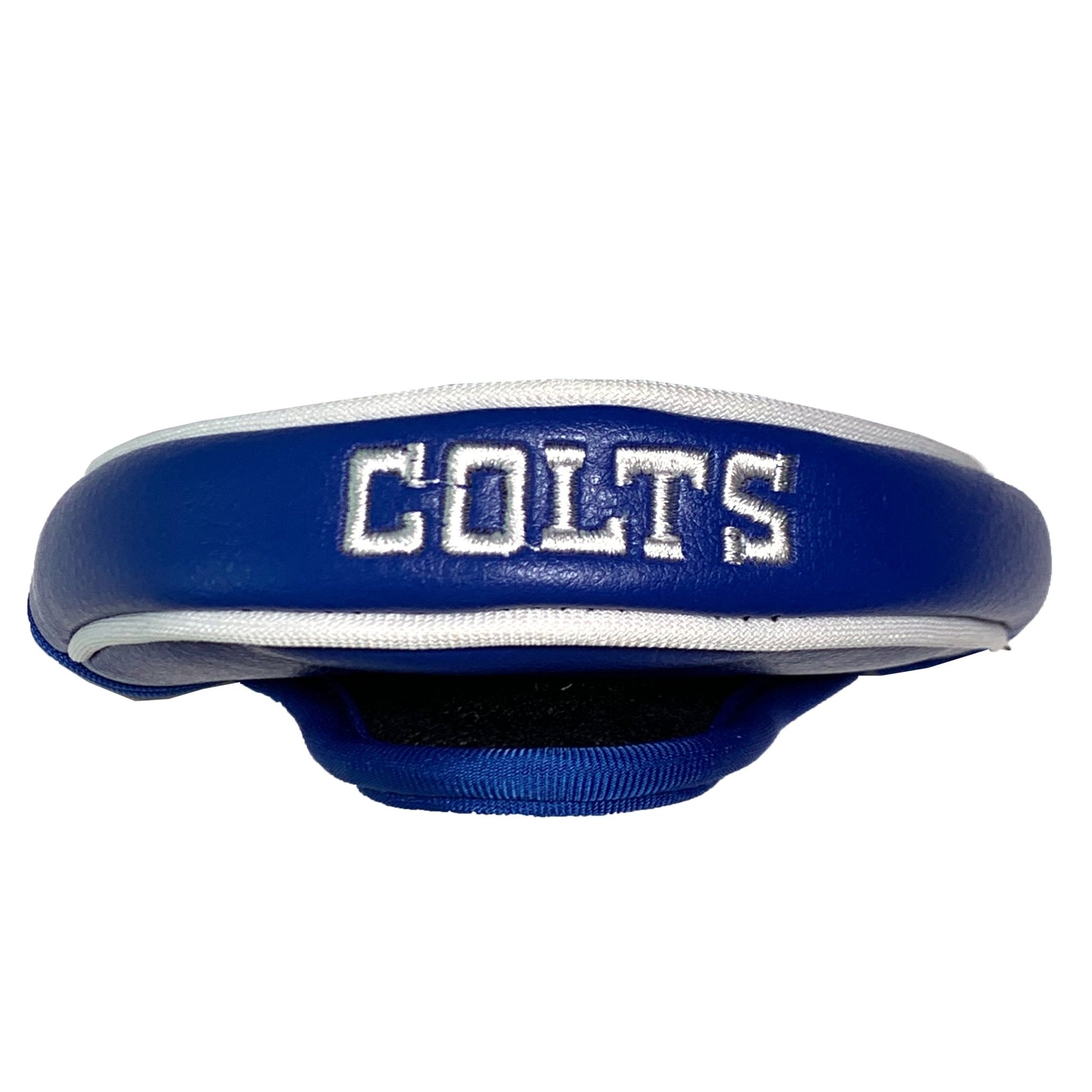 This Indianapolis Colts Blade Putter Cover fits virtually all blade putters and includes 2 location embroidery and fleece lining for extra club protection. Made of buffalo vinyl and synthetic suede like material.