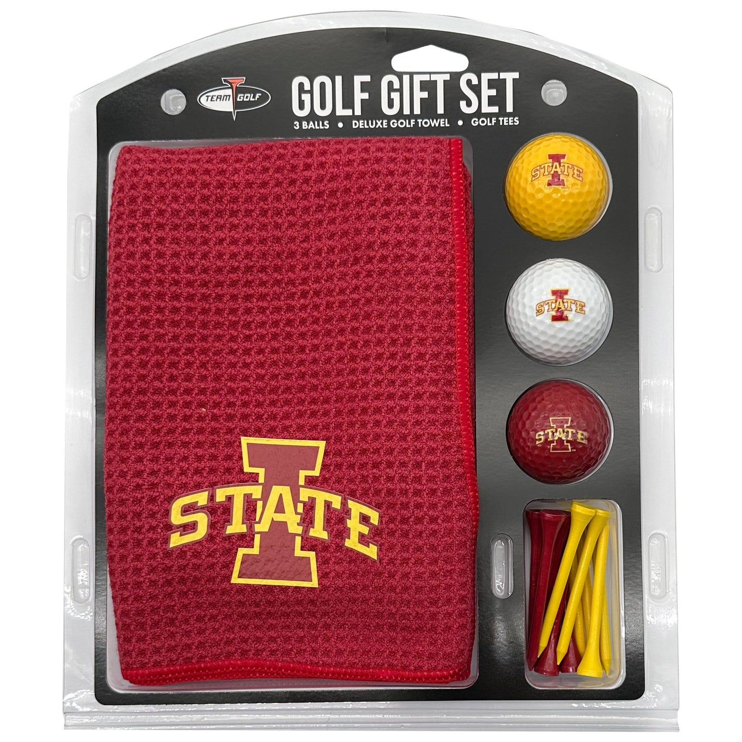 - Microfiber Towel Gift Set includes 16x40 microfiber towel (team color or white) with printed logo, 3 golf balls (colors may vary), and set of 10 tees
