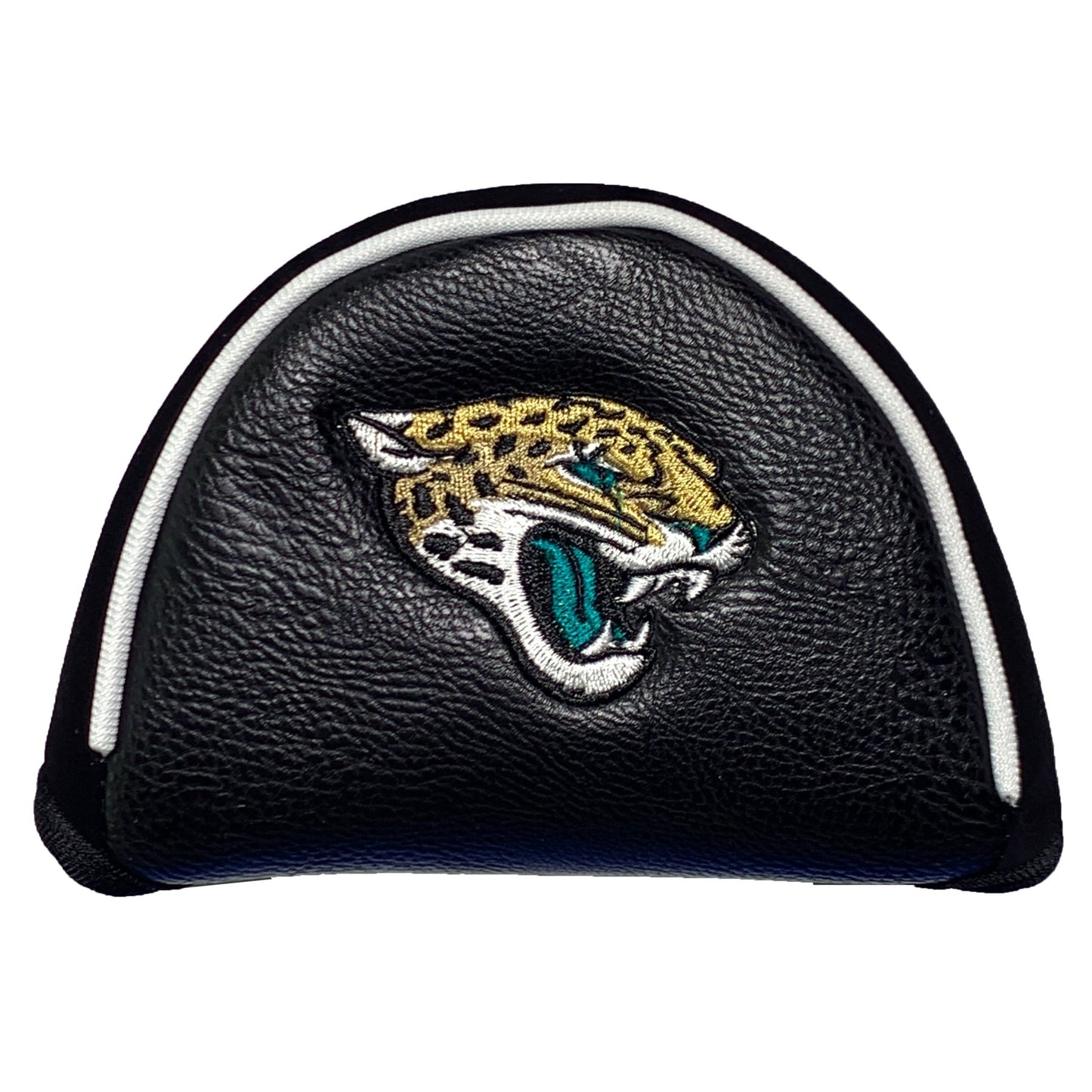 This Jacksonville Jaguars Blade Putter Cover fits virtually all blade putters and includes 2 location embroidery and fleece lining for extra club protection. Made of buffalo vinyl and synthetic suede like material.