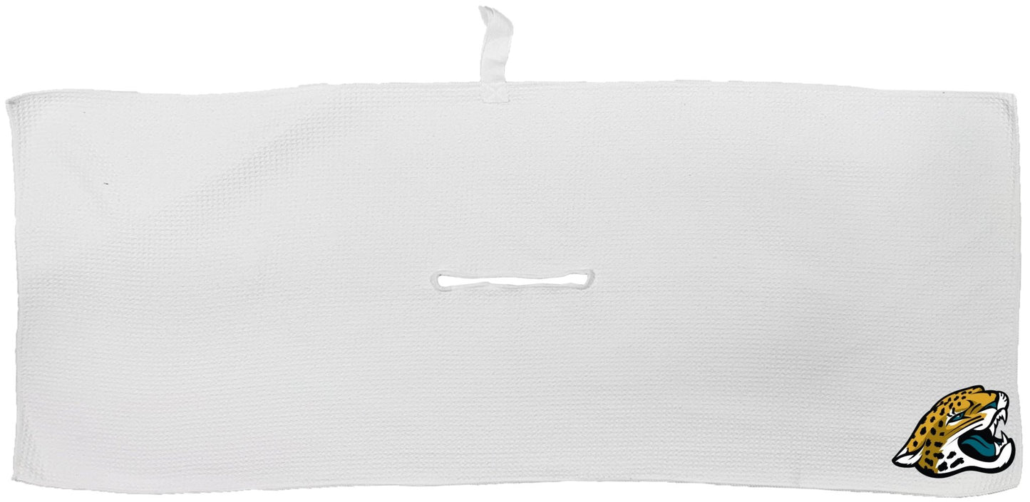 Tri-Fold 16" x 22" towel features a checkered scrubber design for easier cleaning, swivel clip for easy attachment and removal from golf bags and a full color embroidered logo. 100% Cotton