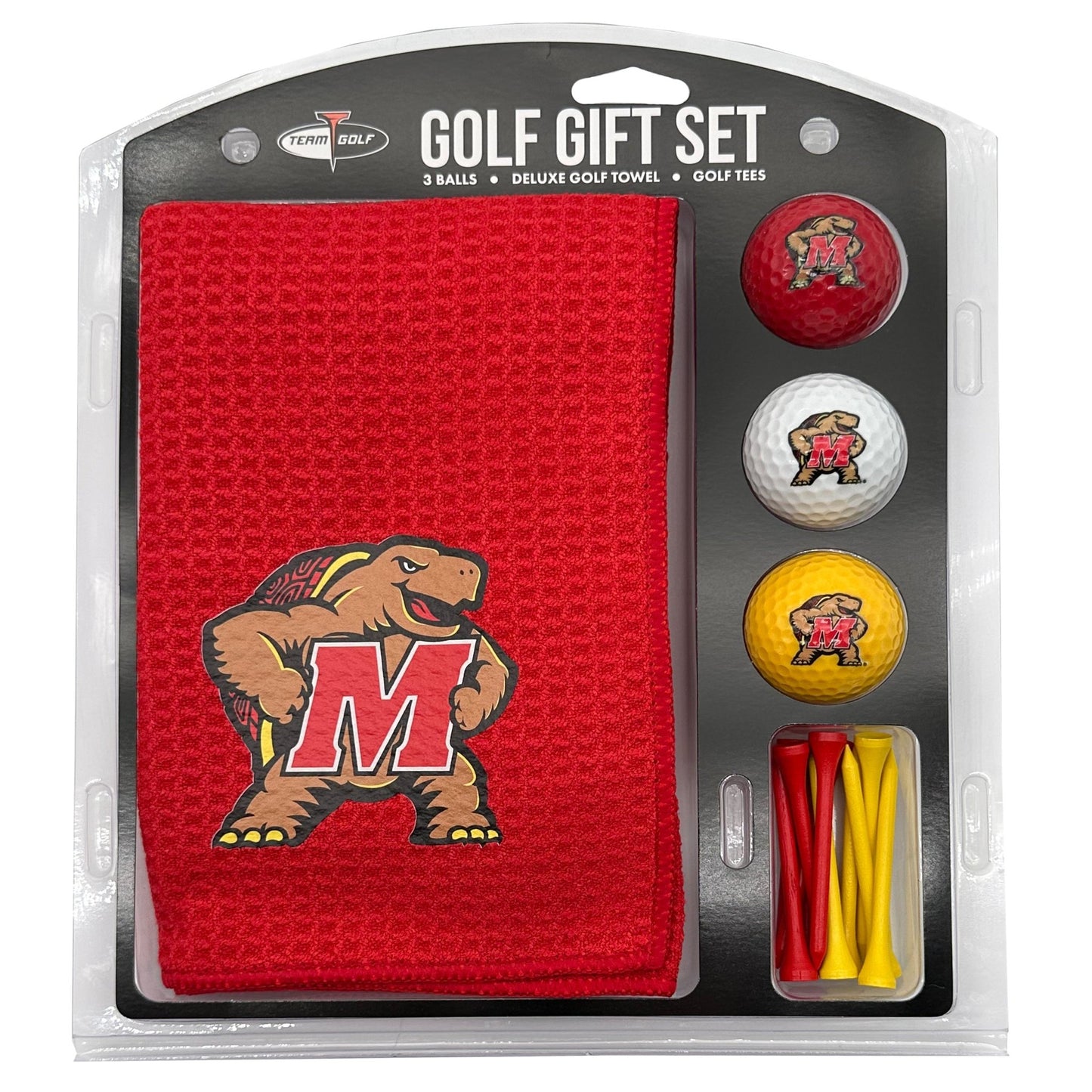 - Microfiber Towel Gift Set includes 16x40 microfiber towel (team color or white) with printed logo, 3 golf balls (colors may vary), and set of 10 tees