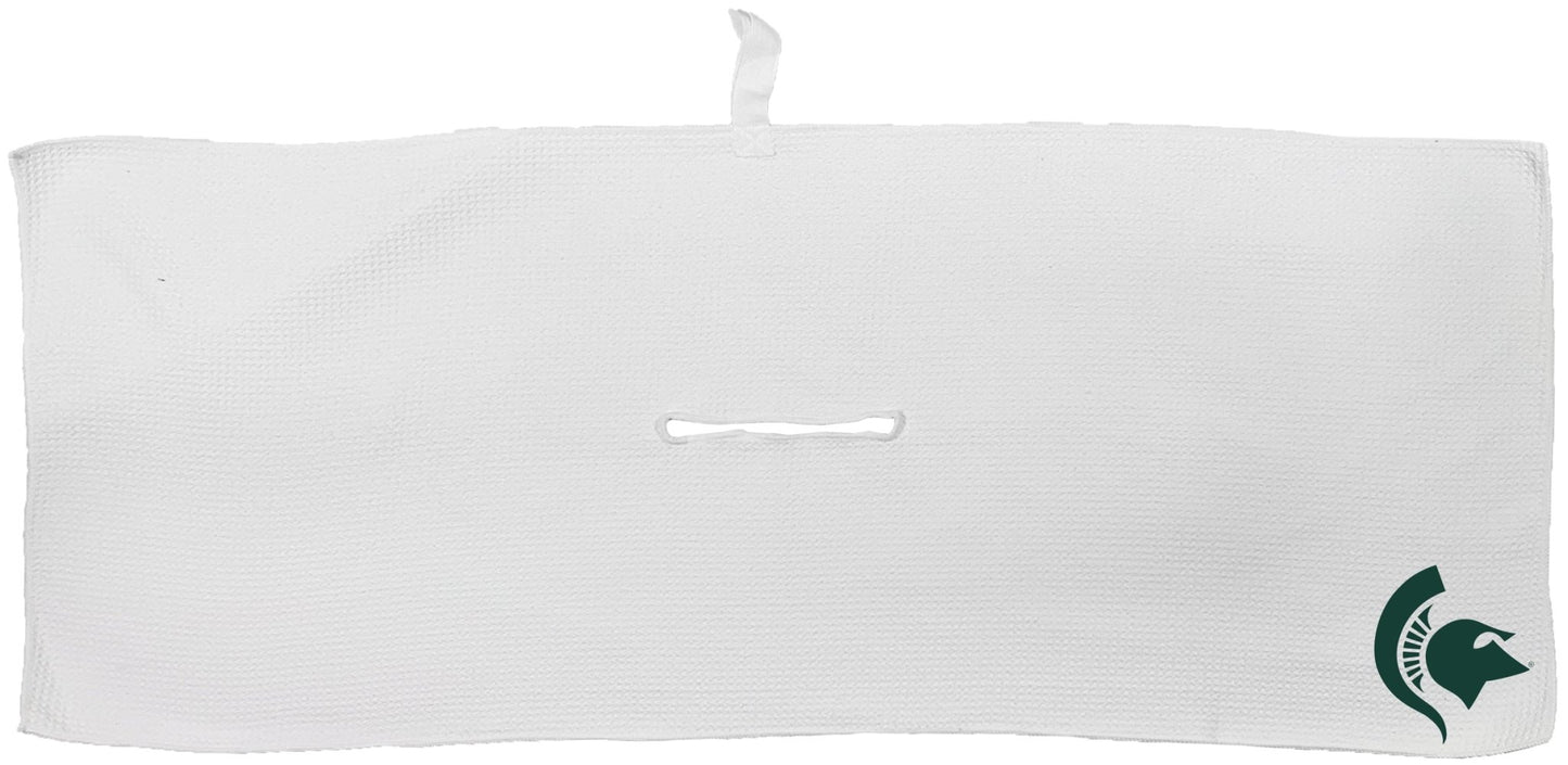 Tri-Fold 16" x 22" towel features a checkered scrubber design for easier cleaning, swivel clip for easy attachment and removal from golf bags and a full color embroidered logo. 100% Cotton