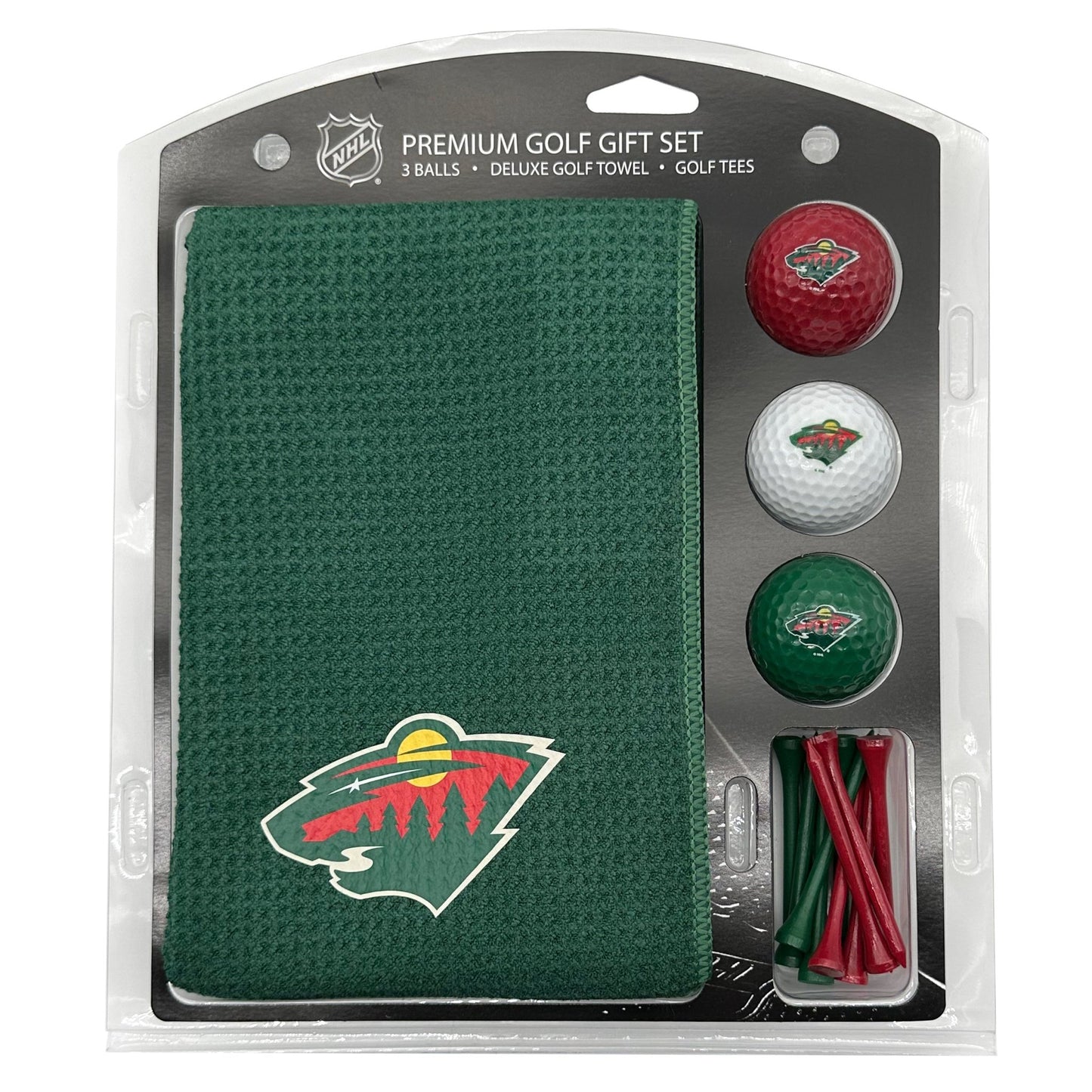 - Microfiber Towel Gift Set includes 16x40 microfiber towel (team color or white) with printed logo, 3 golf balls (colors may vary), and set of 10 tees