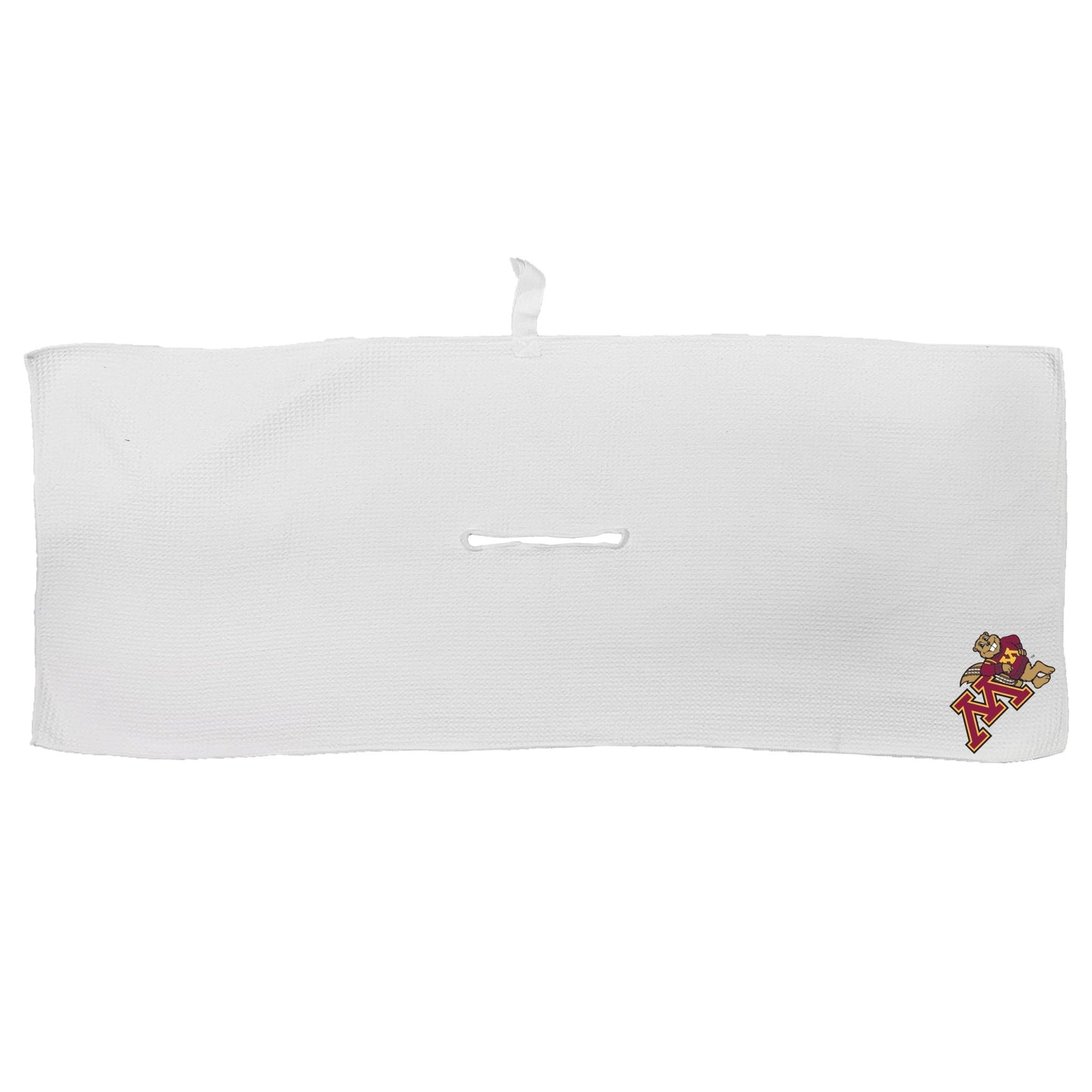Tri-Fold 16" x 22" towel features a checkered scrubber design for easier cleaning, swivel clip for easy attachment and removal from golf bags and a full color embroidered logo. 100% Cotton