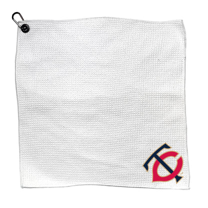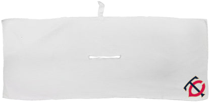 Tri-Fold 16" x 22" towel features a checkered scrubber design for easier cleaning, swivel clip for easy attachment and removal from golf bags and a full color embroidered logo. 100% Cotton