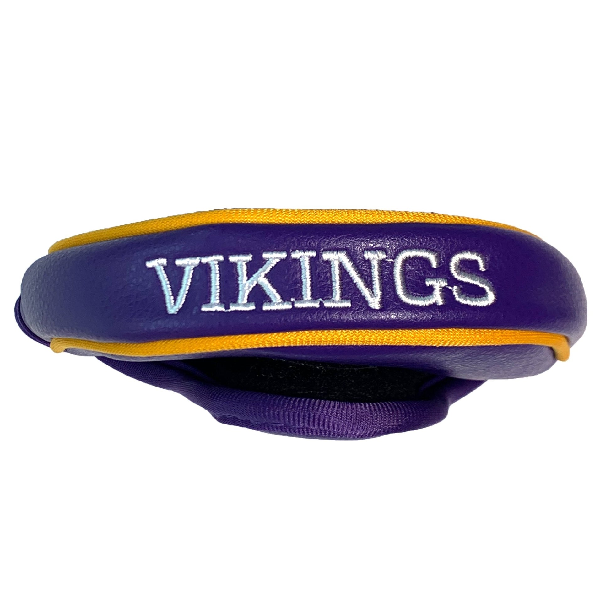 This Minnesota Vikings Blade Putter Cover fits virtually all blade putters and includes 2 location embroidery and fleece lining for extra club protection. Made of buffalo vinyl and synthetic suede like material.