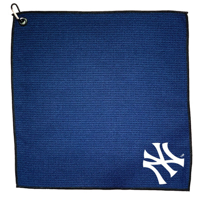 Microfiber 15X15" towel features handy carabiner for easy attachment and removal from golf bags and full color printed logo.