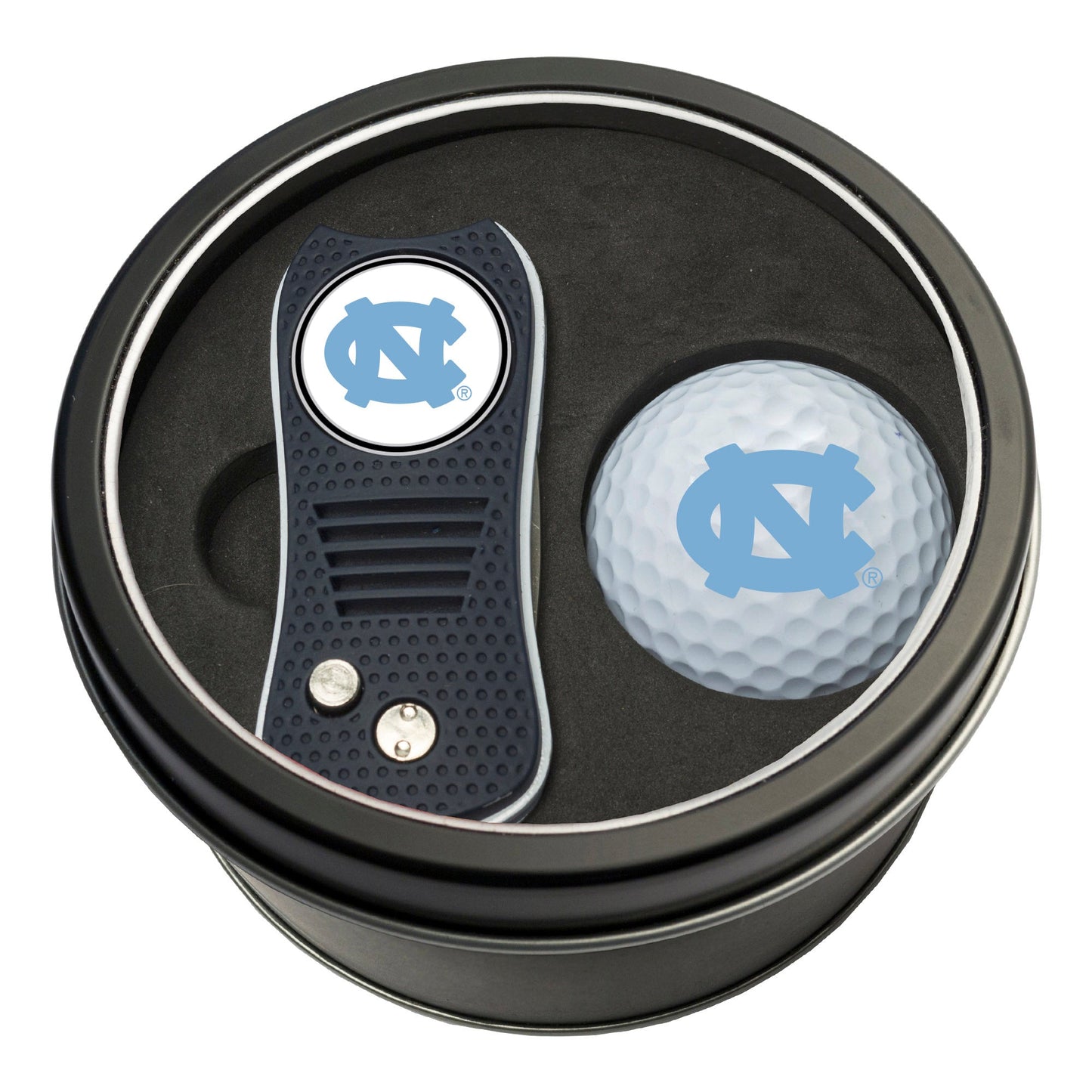 - Golf Ball Tin includes switchblade style retractable divot tool with double-sided magnetic ball marker, 1 logo golf ball