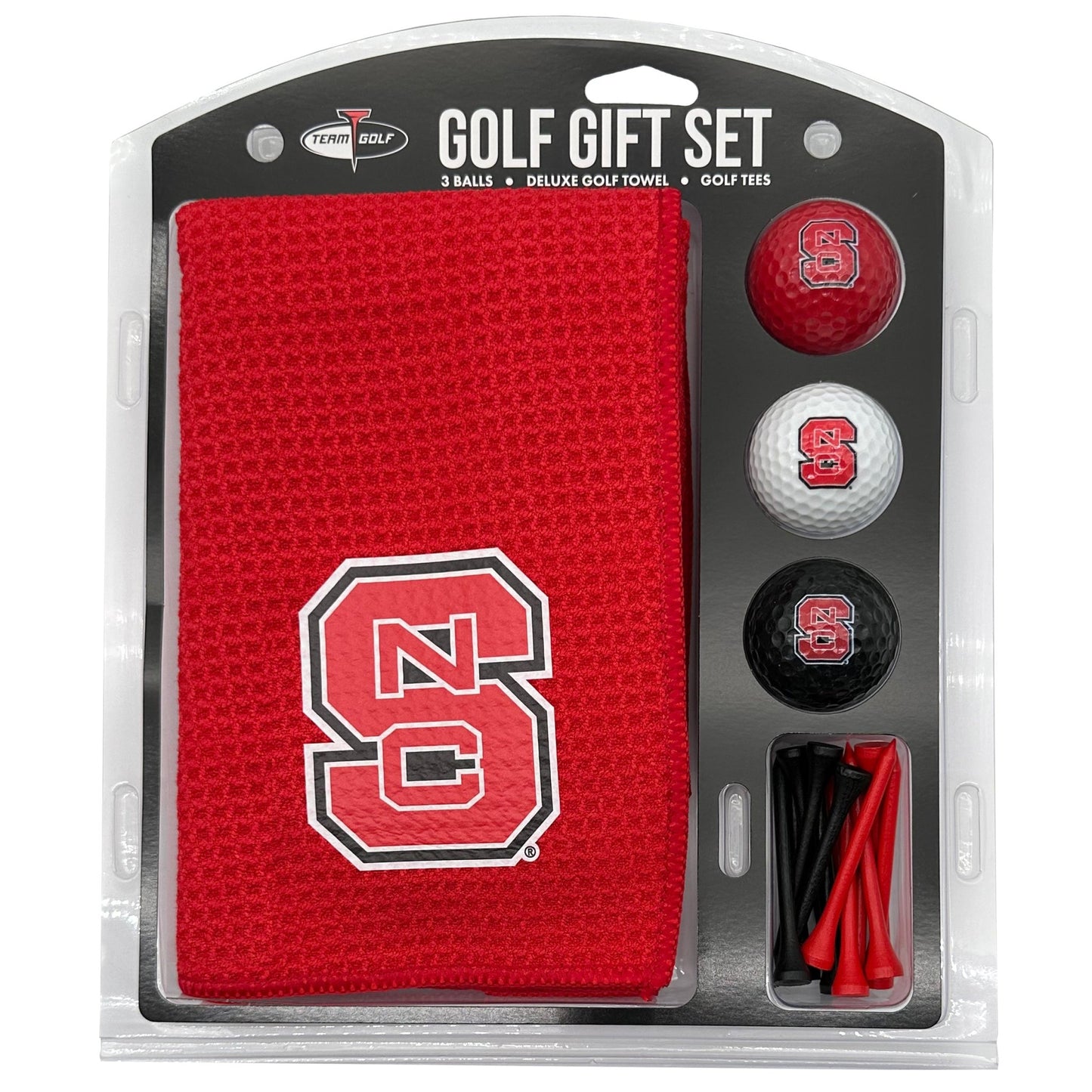 - Microfiber Towel Gift Set includes 16x40 microfiber towel (team color or white) with printed logo, 3 golf balls (colors may vary), and set of 10 tees