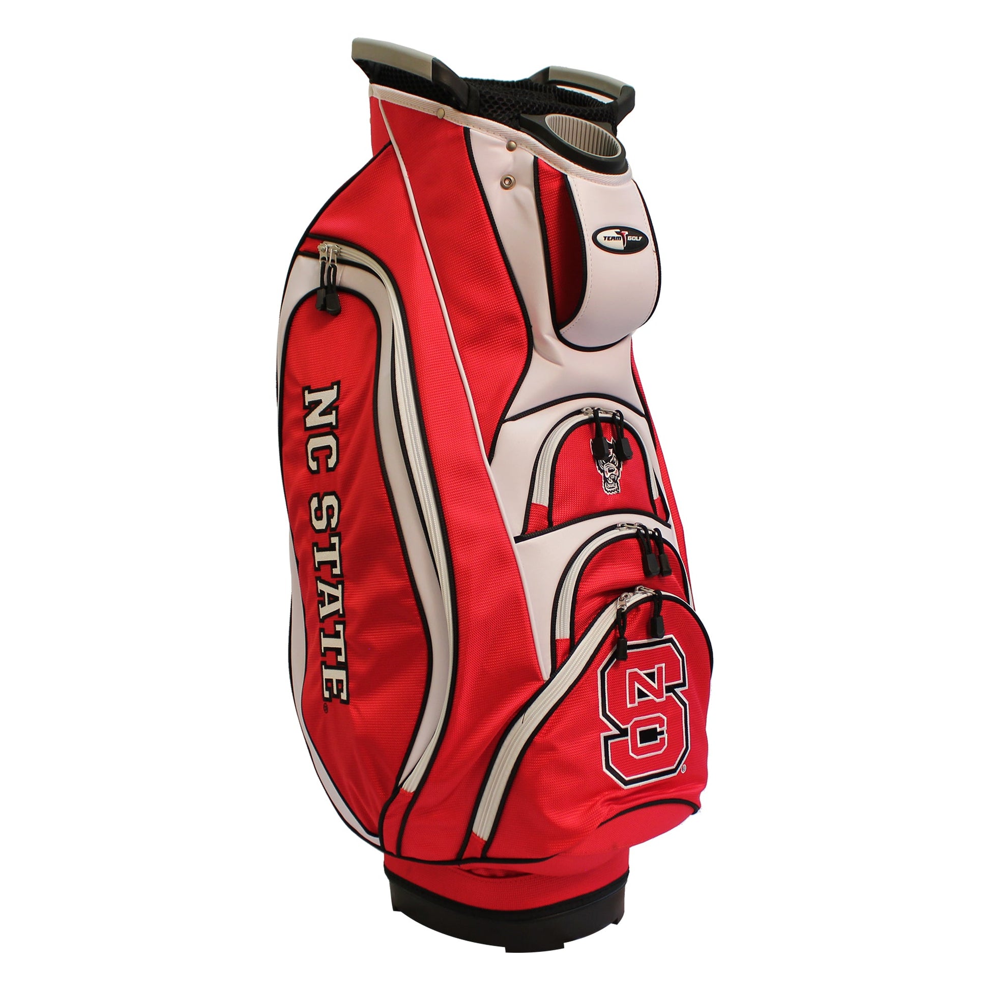 This cart bag features 10-way full length dividers, 3 bottom compartments, an oversized putter well, padded straps, removable rain hood, towel ring and umbrella holder; It comes with five zippered pockets; One to hold valuables and another cooler pocket to store drinks.